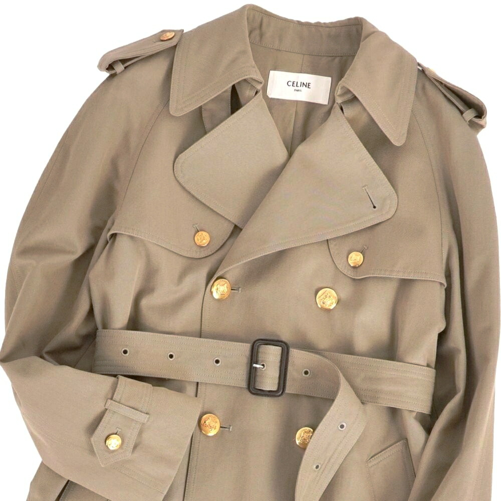 セリーヌ CELINE コート トレンチコート ウール コットン 金ボタン アウター レディース フランス製 ベージュ サイズ34(XS相当)