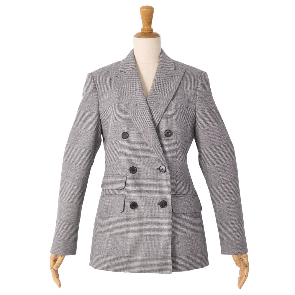 マックスマーラ Max Mara ジャケット 2023 テーラード ダブルブレスト チェック ウール アウター レディース イタリア製 グレー サイズIT36 US2 GB4(XS相当)