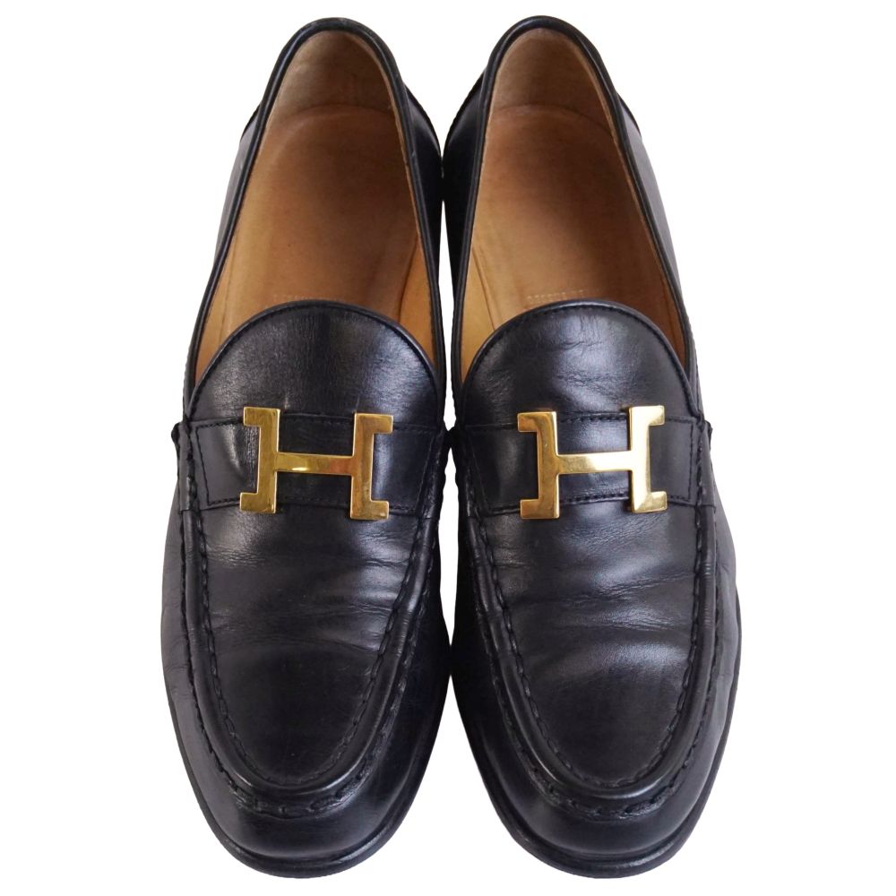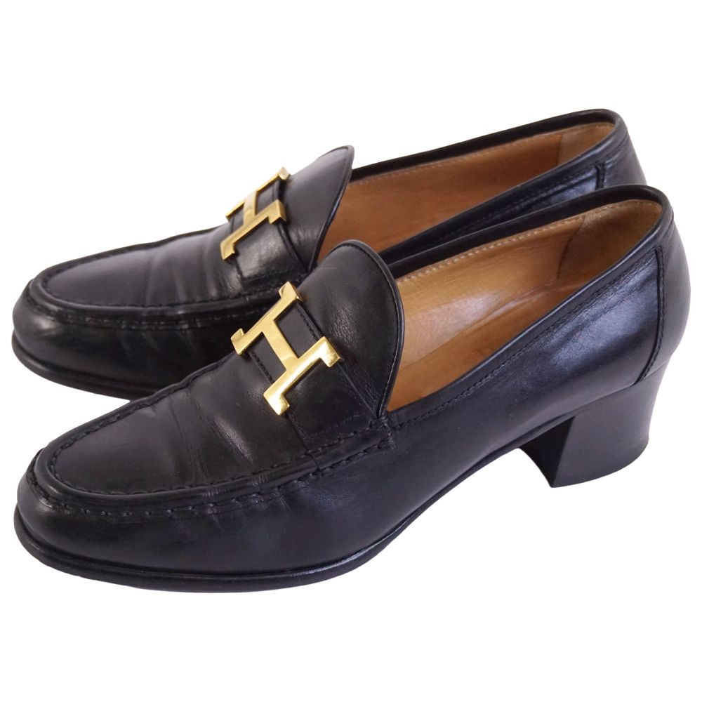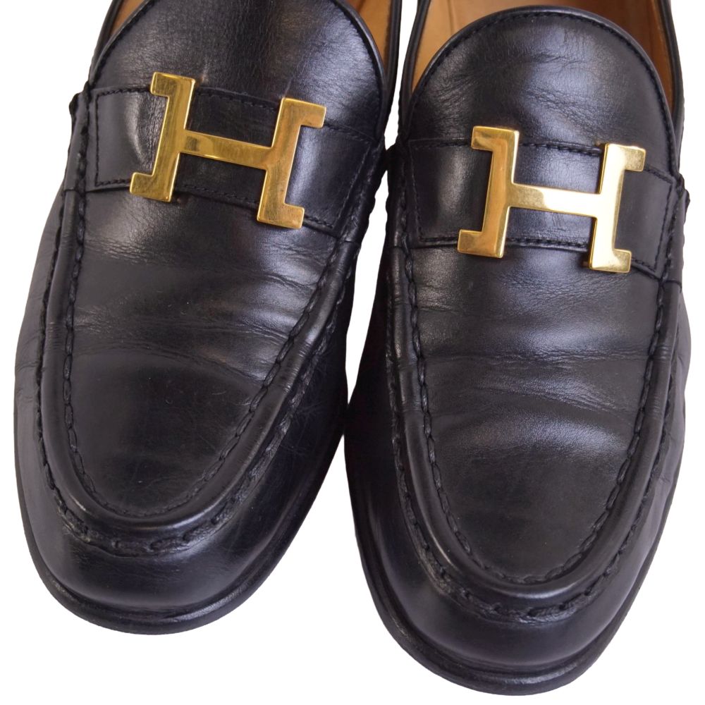 エルメス HERMES ローファー モカシン ヒール コンスタンス Hロゴ金具 レザー シューズ 靴 レディース イタリア製 ブラック サイズ37(24cm相当)