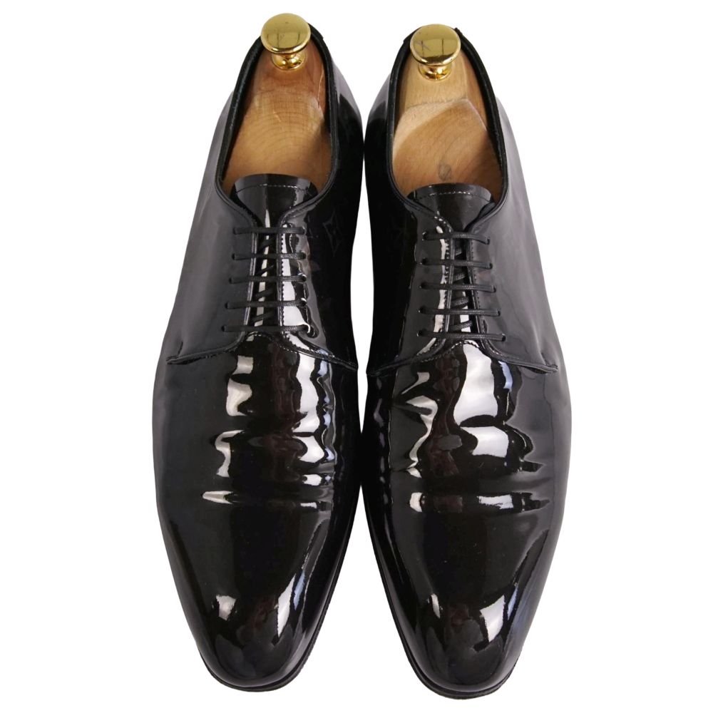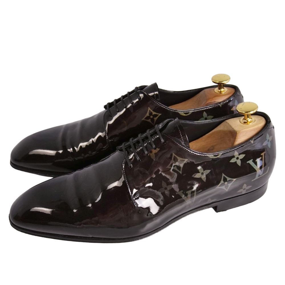 ルイヴィトン LOUIS VUITTON レザーシューズ グルネル ライン ダービーシューズ モノグラム パテントレザー 革靴 メンズ イタリア製 ブラック サイズ7.5(26cm相当)