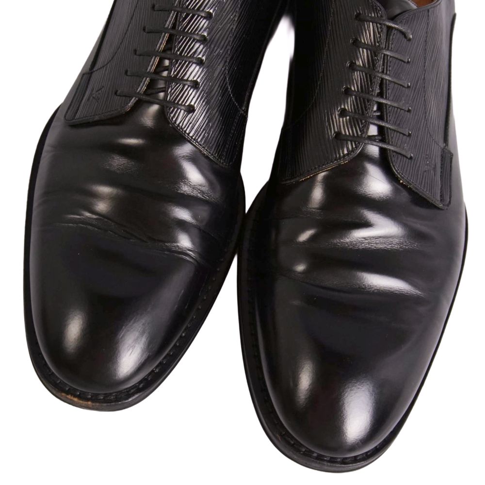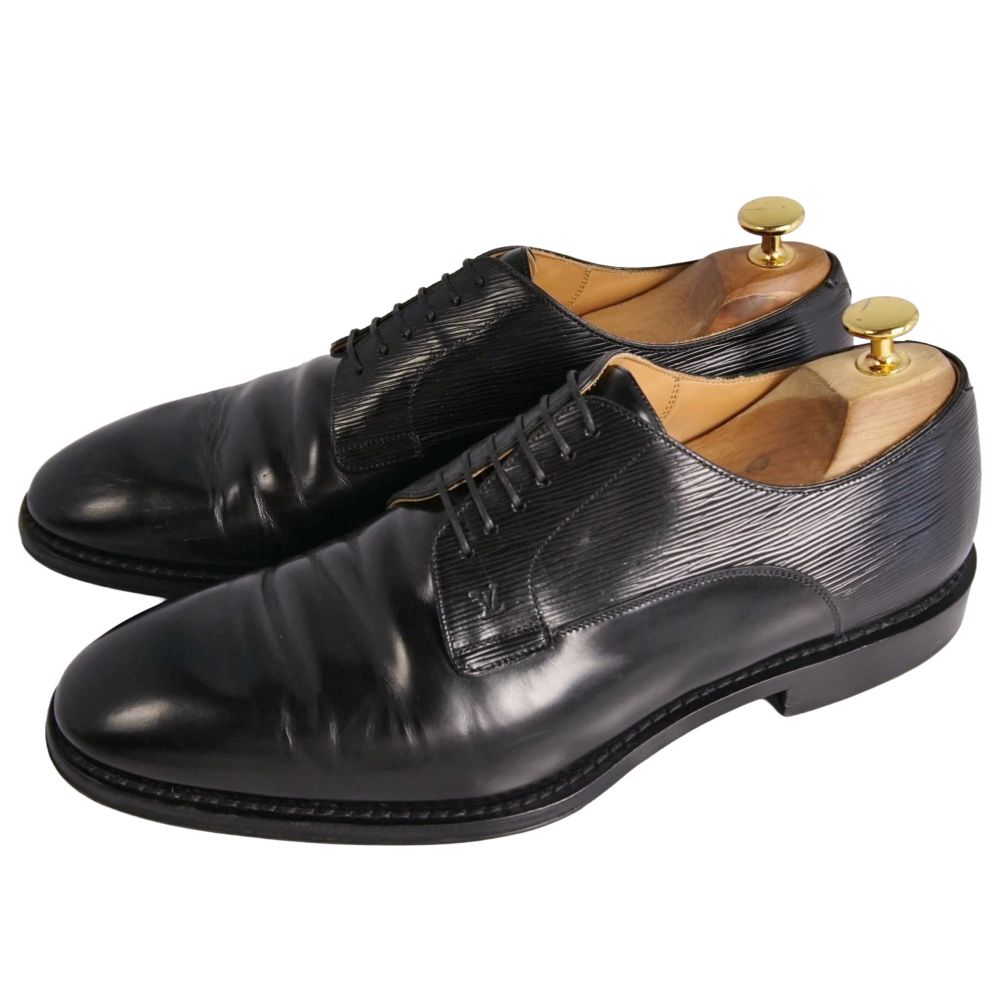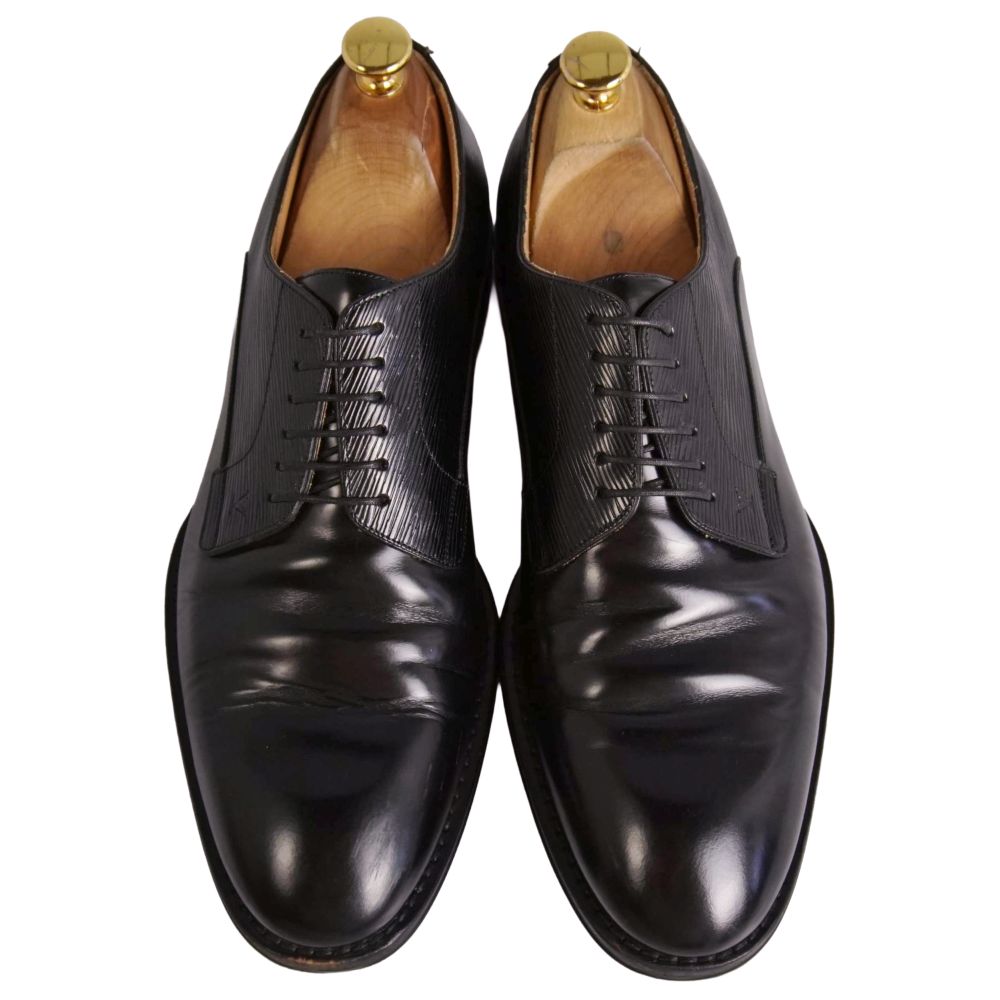 ルイヴィトン LOUIS VUITTON レザーシューズ ウォールストリートライン ダービーシューズ ビジネスシューズ アピレザー 革靴 メンズ イタリア製 ブラック サイズ8(26.5cm相当)