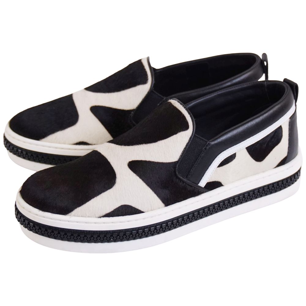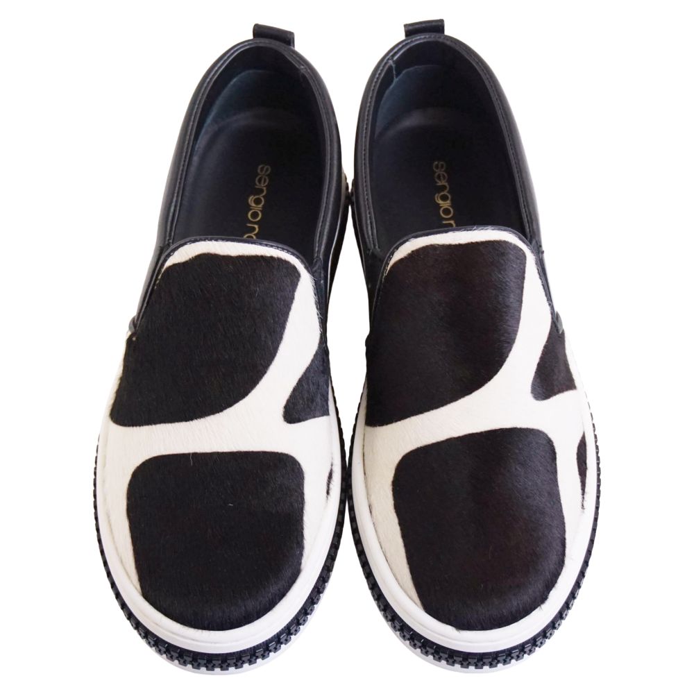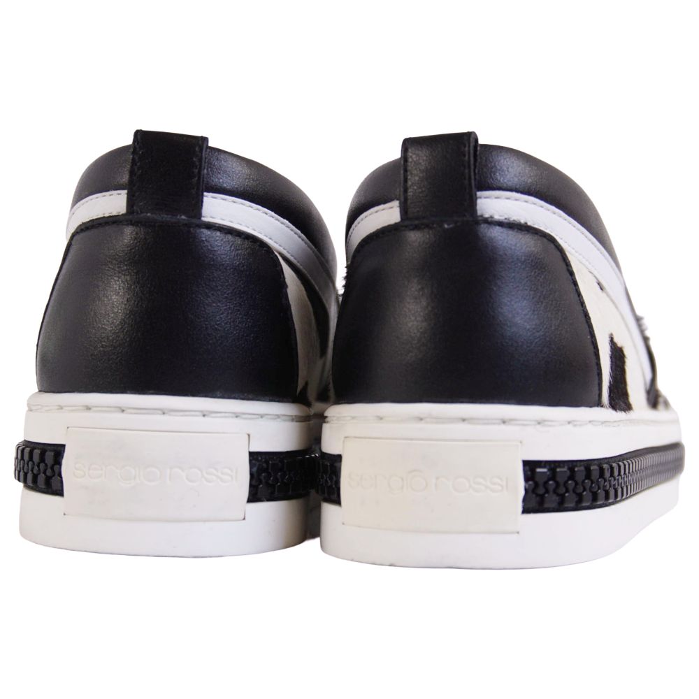 セルジオロッシ SERGIO ROSSI スニーカー ホルスタイン スリッポン ハラコ シューズ 靴 レディース イタリア製 ブラック サイズ36(23cm相当)