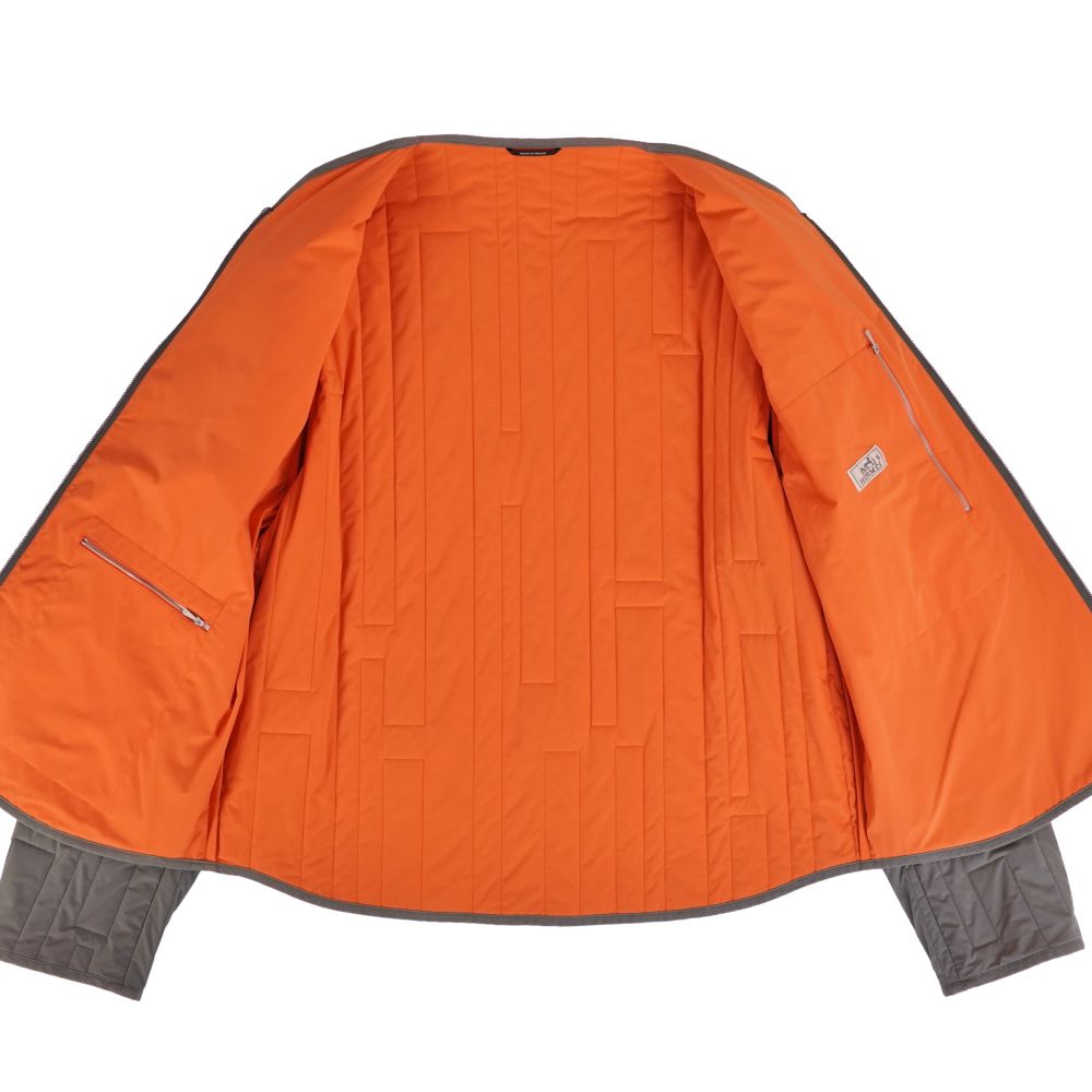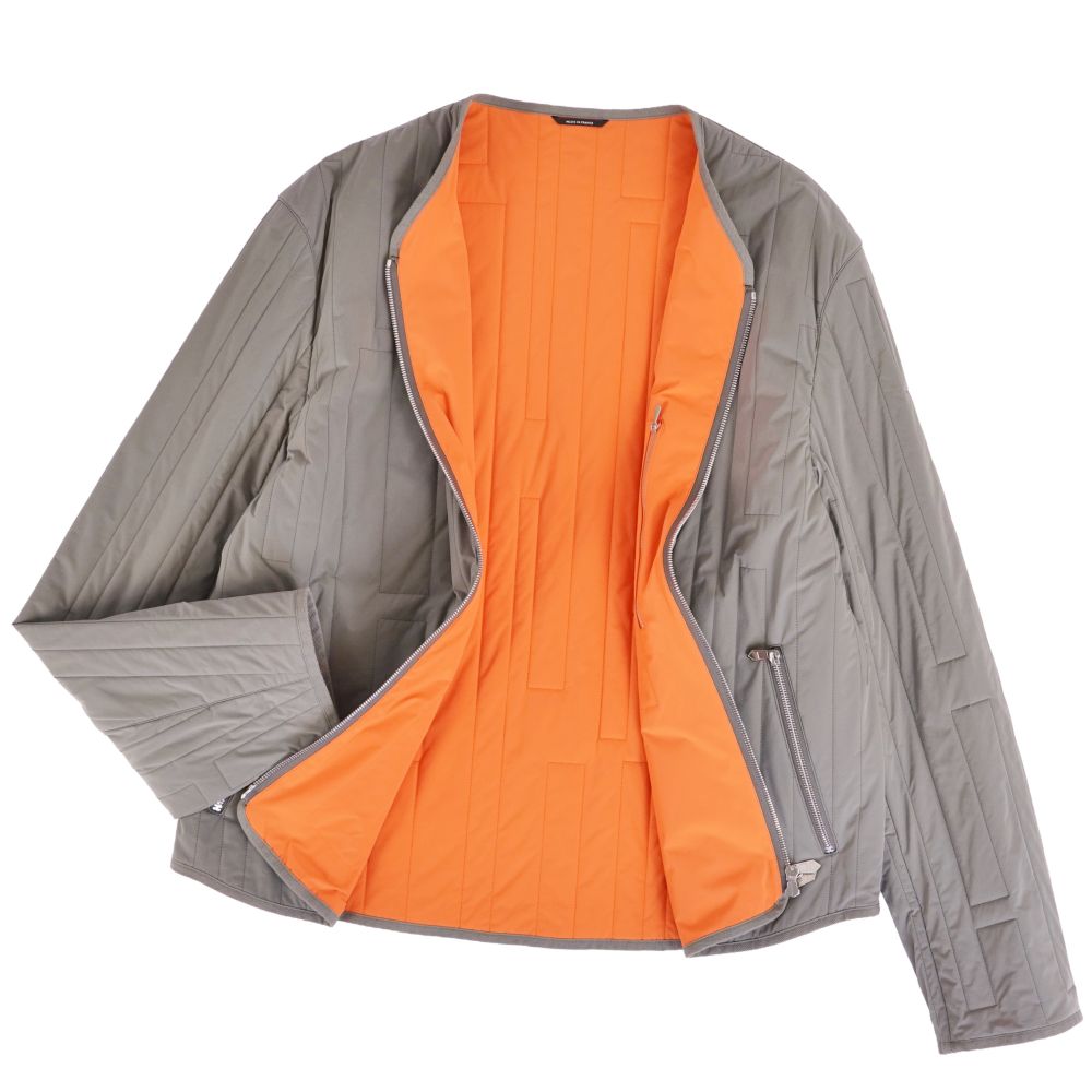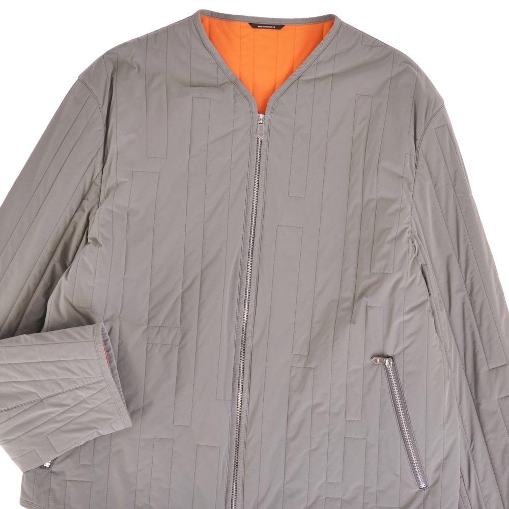 エルメス HERMES ジャケット 21SS blouson sans col ナイロンジャケット キルティング 中綿入り アウター メンズ フランス製 グレー サイズ56(XL相当)