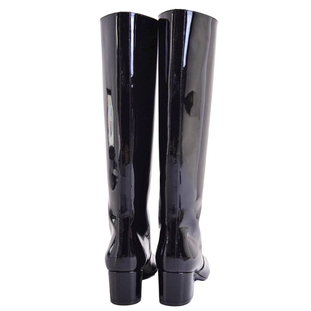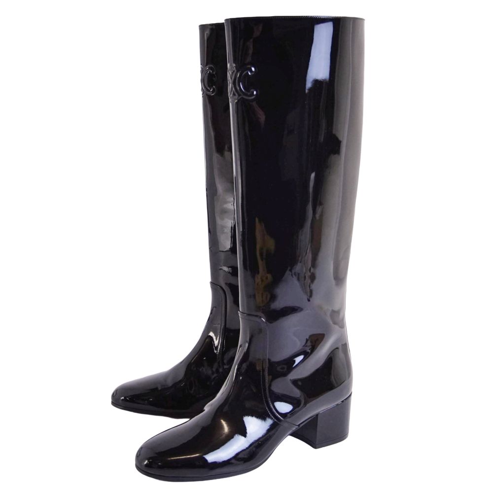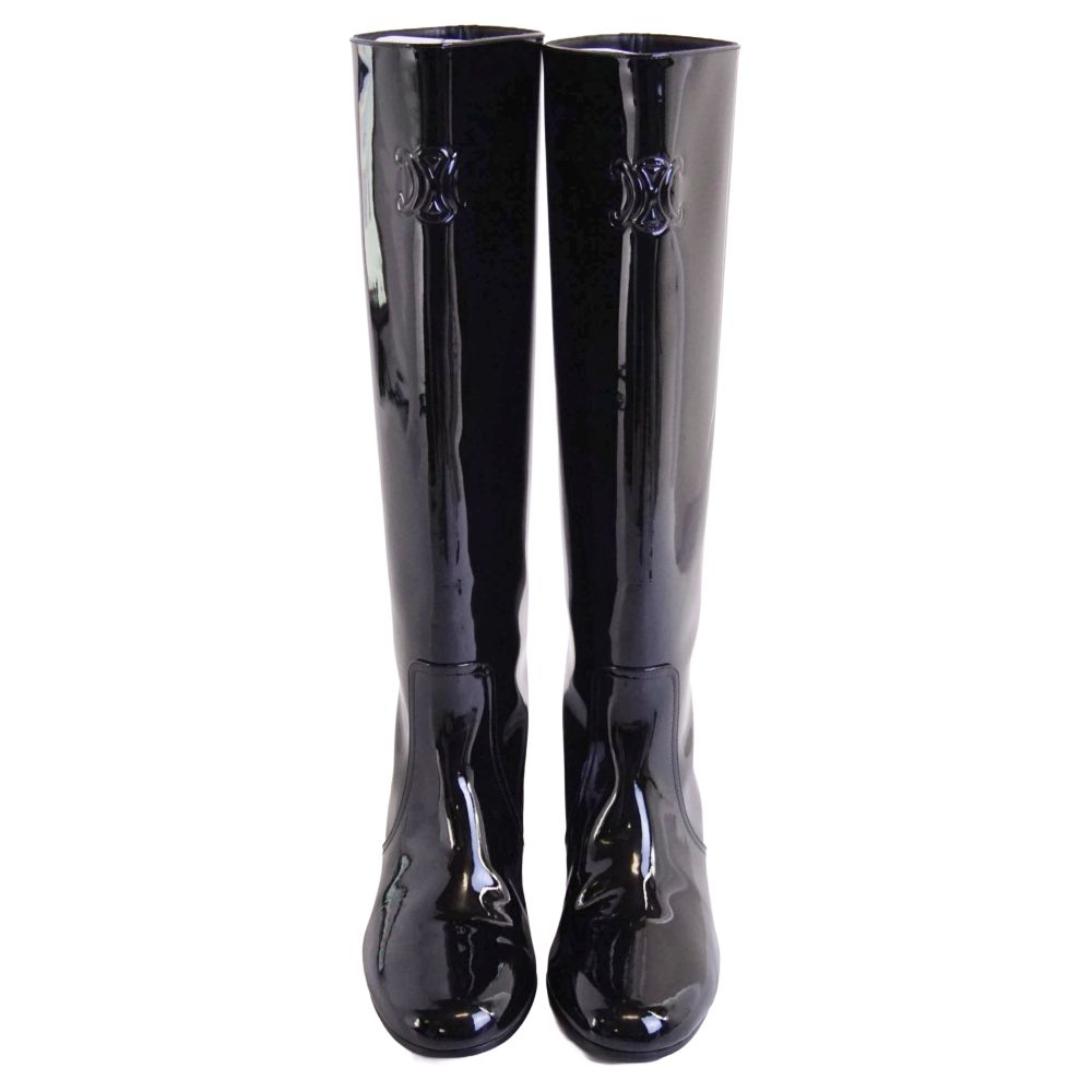 セリーヌ CELINE ブーツ ロングブーツ トリオンフ エナメルレザー ヒール シューズ 靴 レディース イタリア製 ブラック サイズ37(24cm相当)