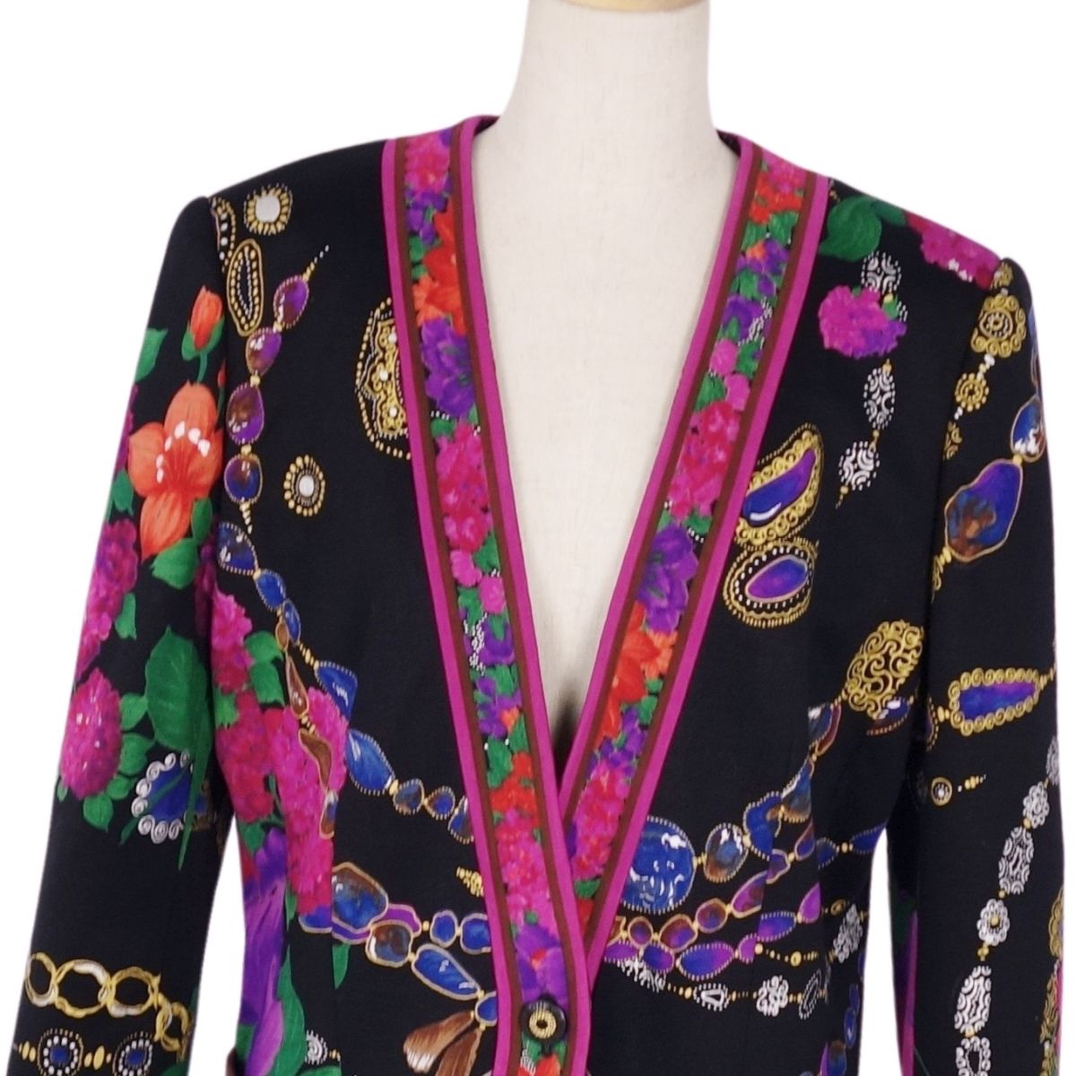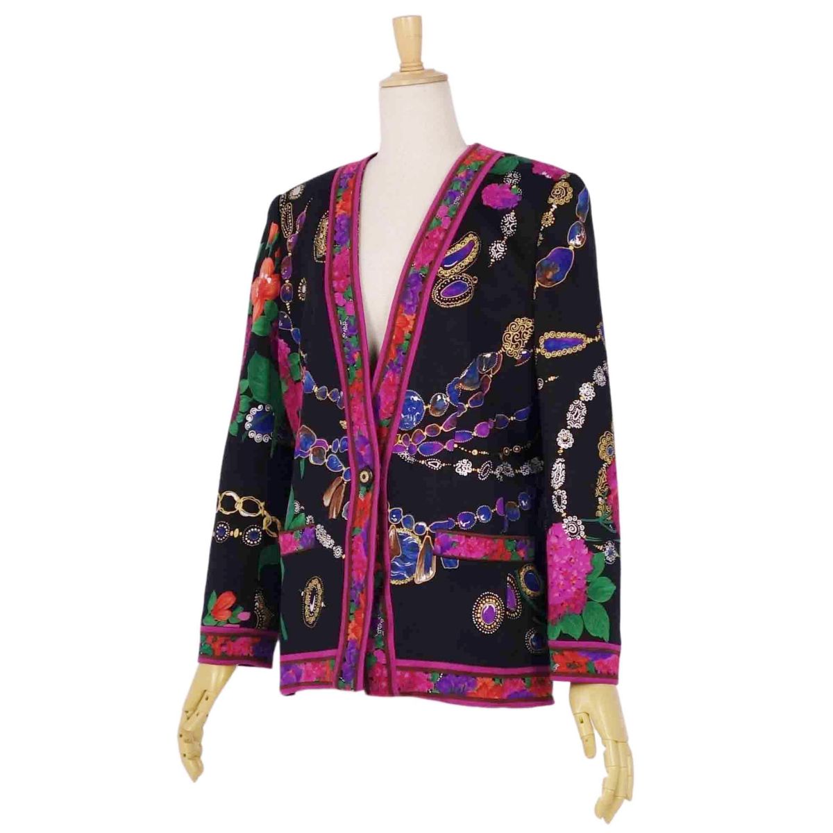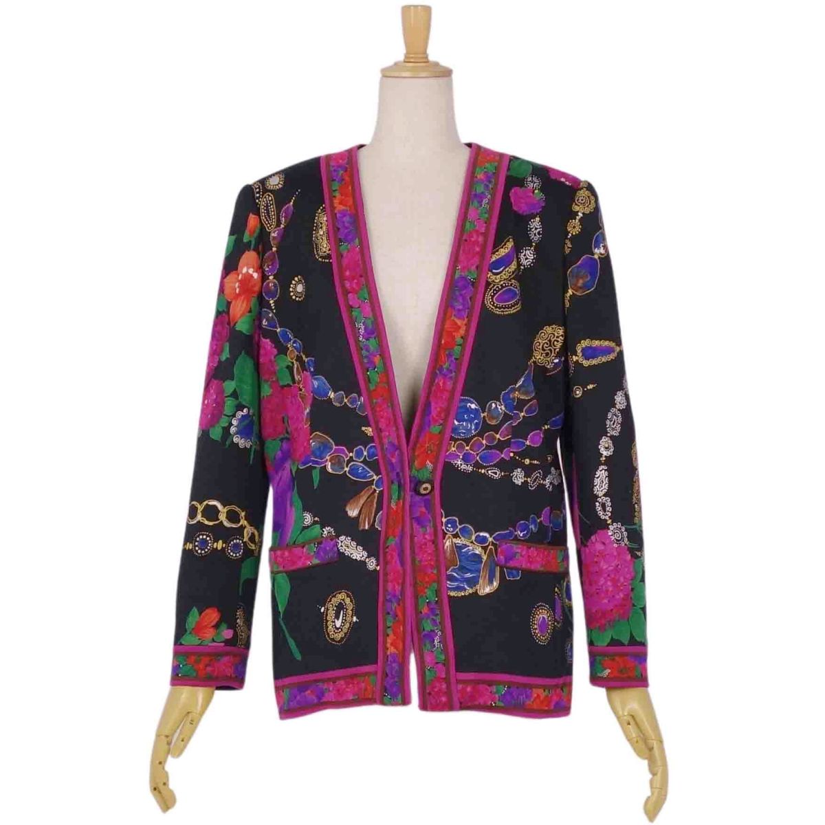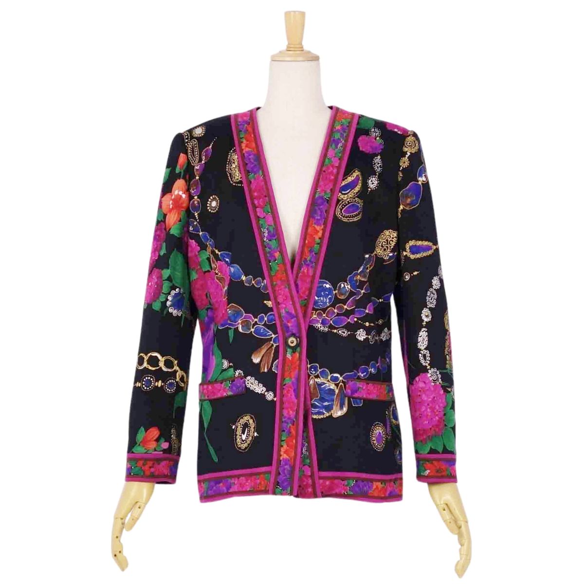| 商品名 | 【新古品】レオナール LEONARD FASHION ジャケット ノーカラー 花柄 ニット シルク アウター レディース 9AR(M相当) マルチカラー【中古】 |