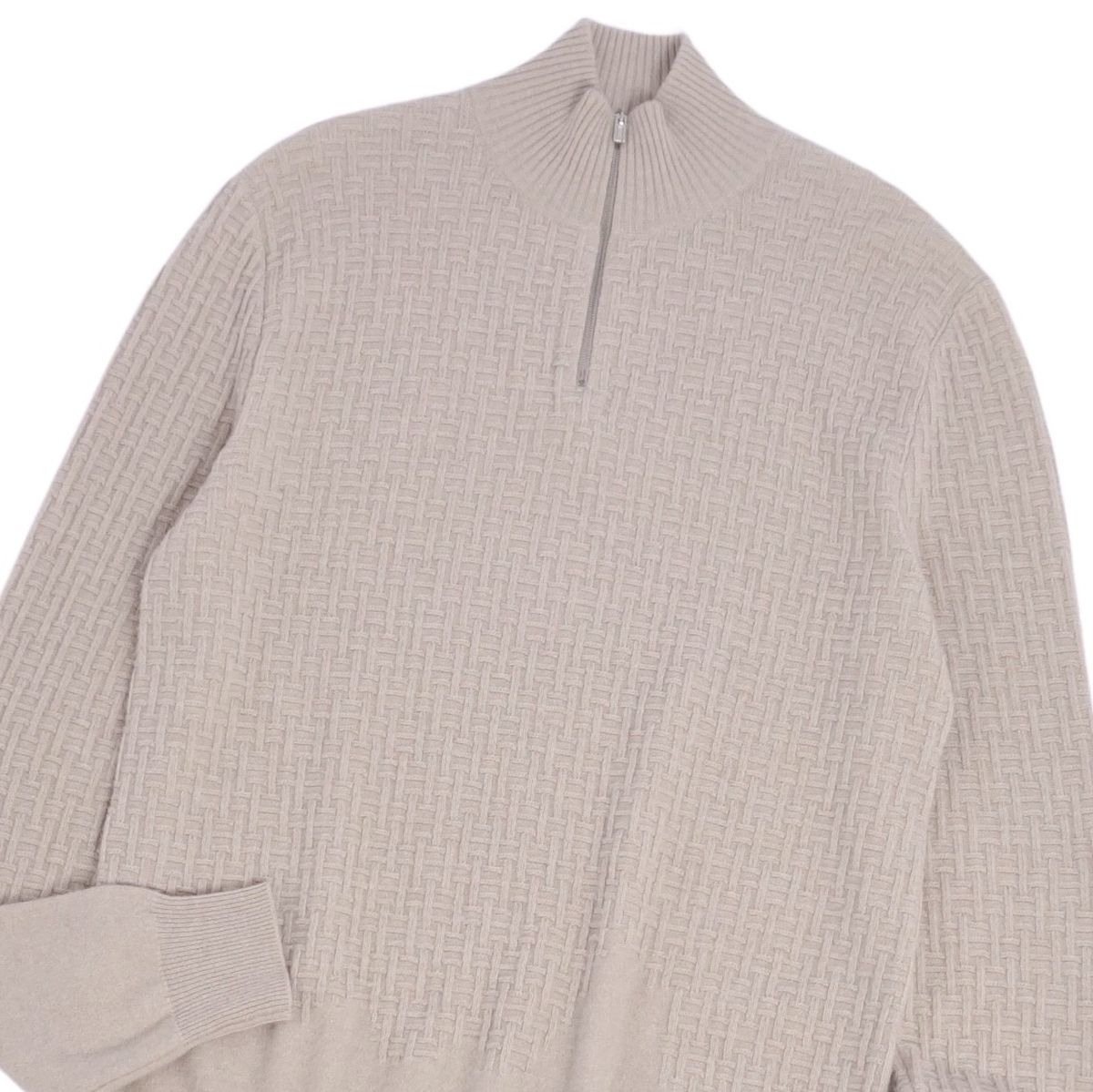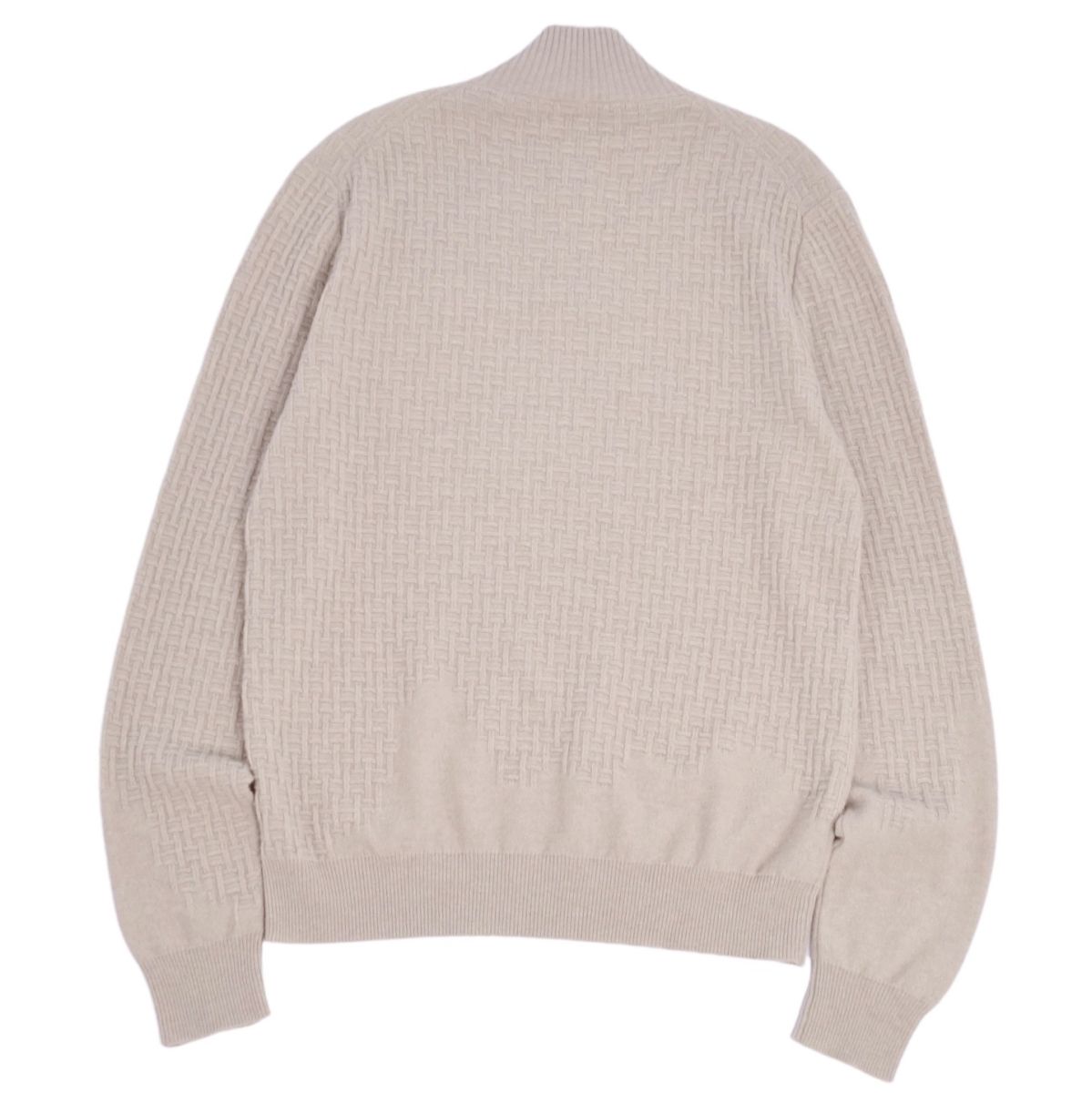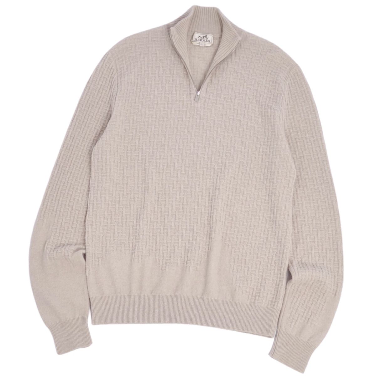エルメス HERMES ニット セーター ハーフジップ Hロゴ 総柄 カシミヤ トップス メンズ イタリア製 ベージュ サイズL