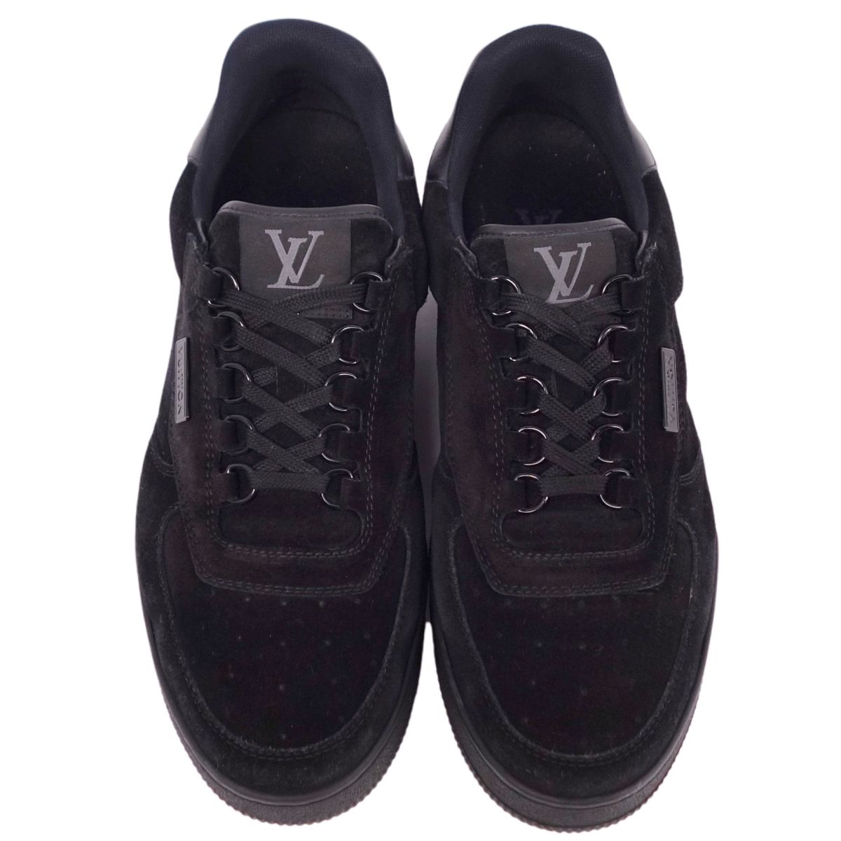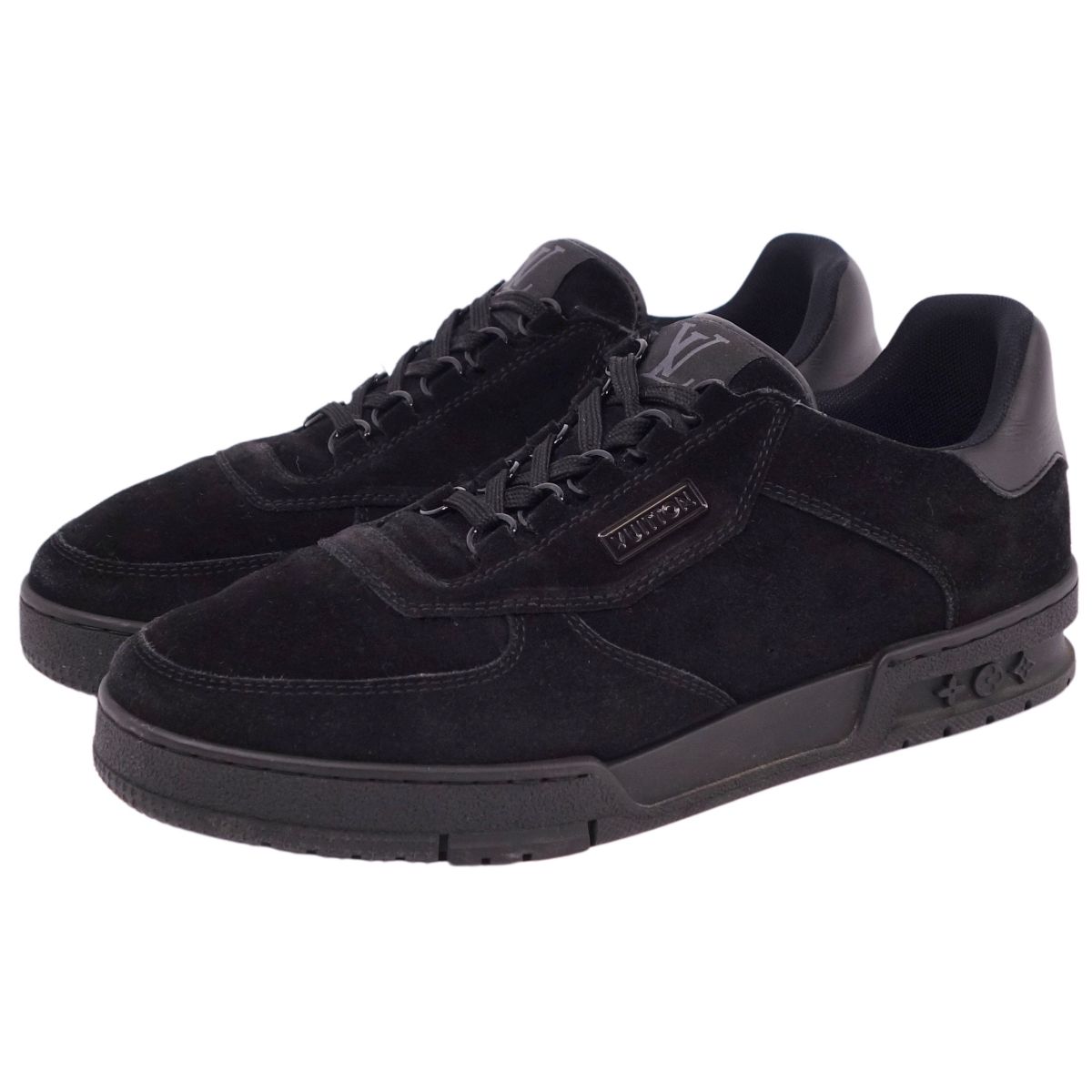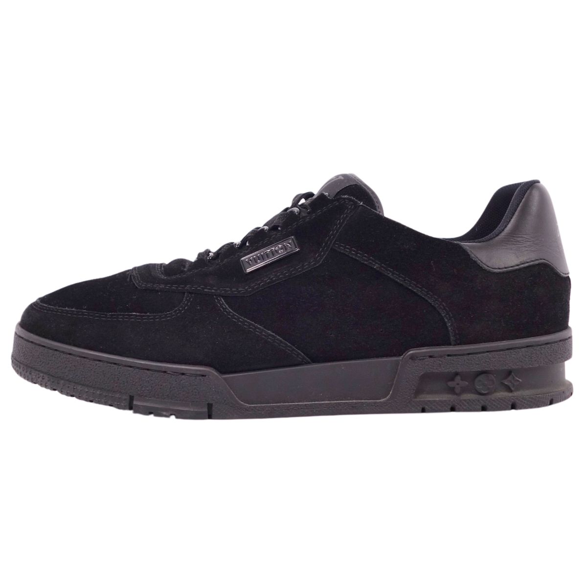 ルイヴィトン LOUIS VUITTON スニーカー LVトレイナー ライン ロゴ モノグラムフラワー スウェードレザー シューズ メンズ ブラック サイズ8(26.5cm相当)
