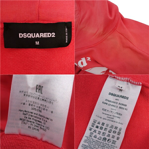 ディースクエアード DSQUARED2 パーカー 2023 フーディー プルオーバー スウェット ロゴ コットン トップス メンズ イタリア製 レッド サイズM