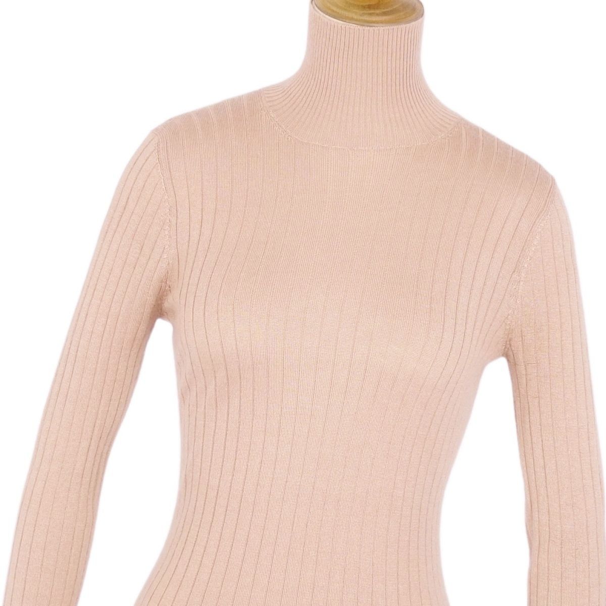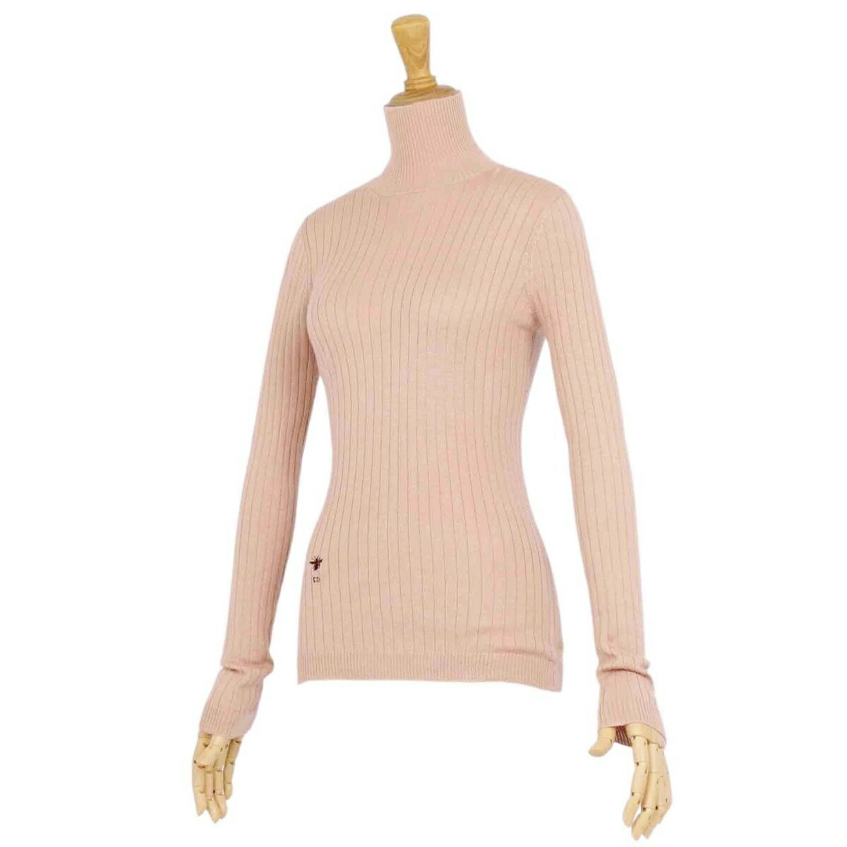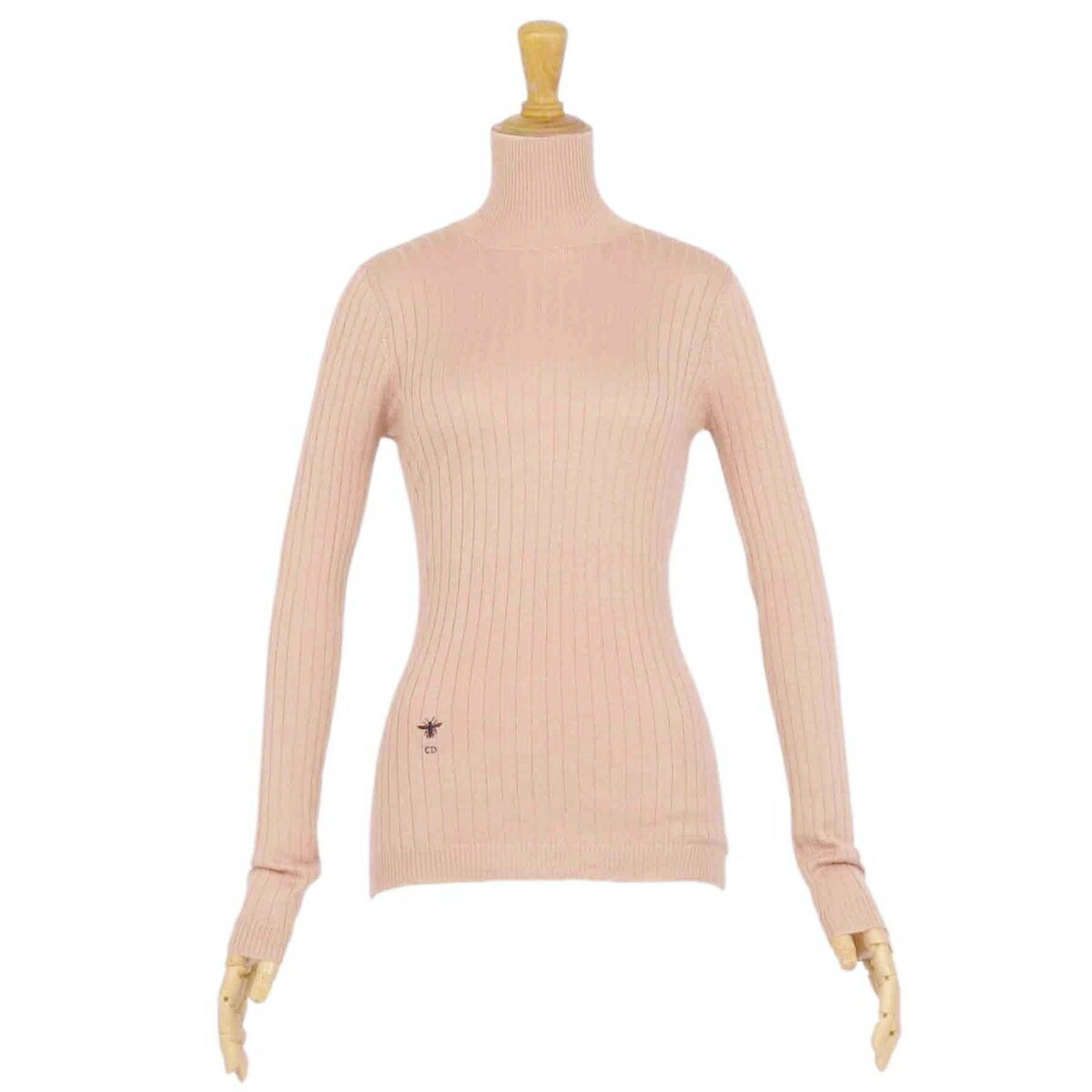 クリスチャンディオール Christian Dior ニット セーター ハイネック ロングスリーブ 長袖 Bee刺繍 カシミヤ シルク トップス レディース ベージュ サイズF34 USA2 I38(S相当)