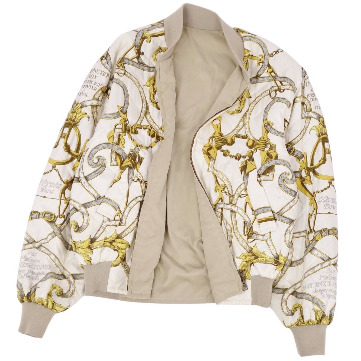 Vintage エルメス HERMES ジャケット リバーシブル ブルゾン ジップアップ 総柄 シルク アウター メンズ フランス製 マルチカラー サイズ46(S相当)