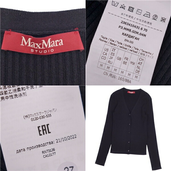 | 商品名 | 【美品】マックスマーラ Max Mara STUDIO ニット カーディガン ロングスリーブ 長袖 無地 トップス レディース M ブラック【中古】 |