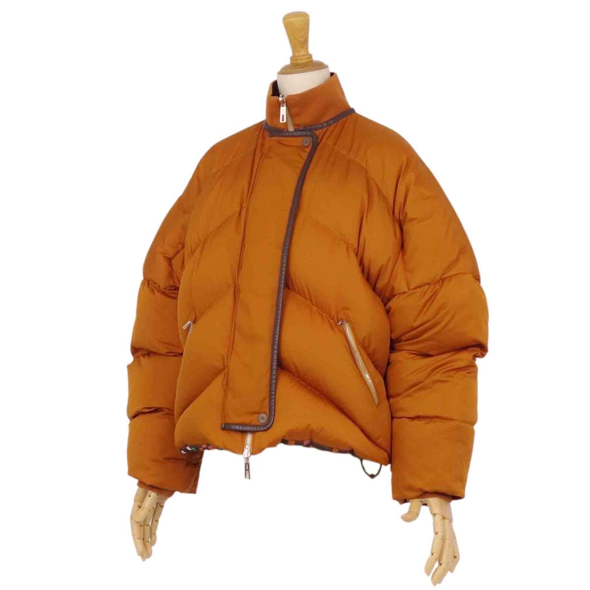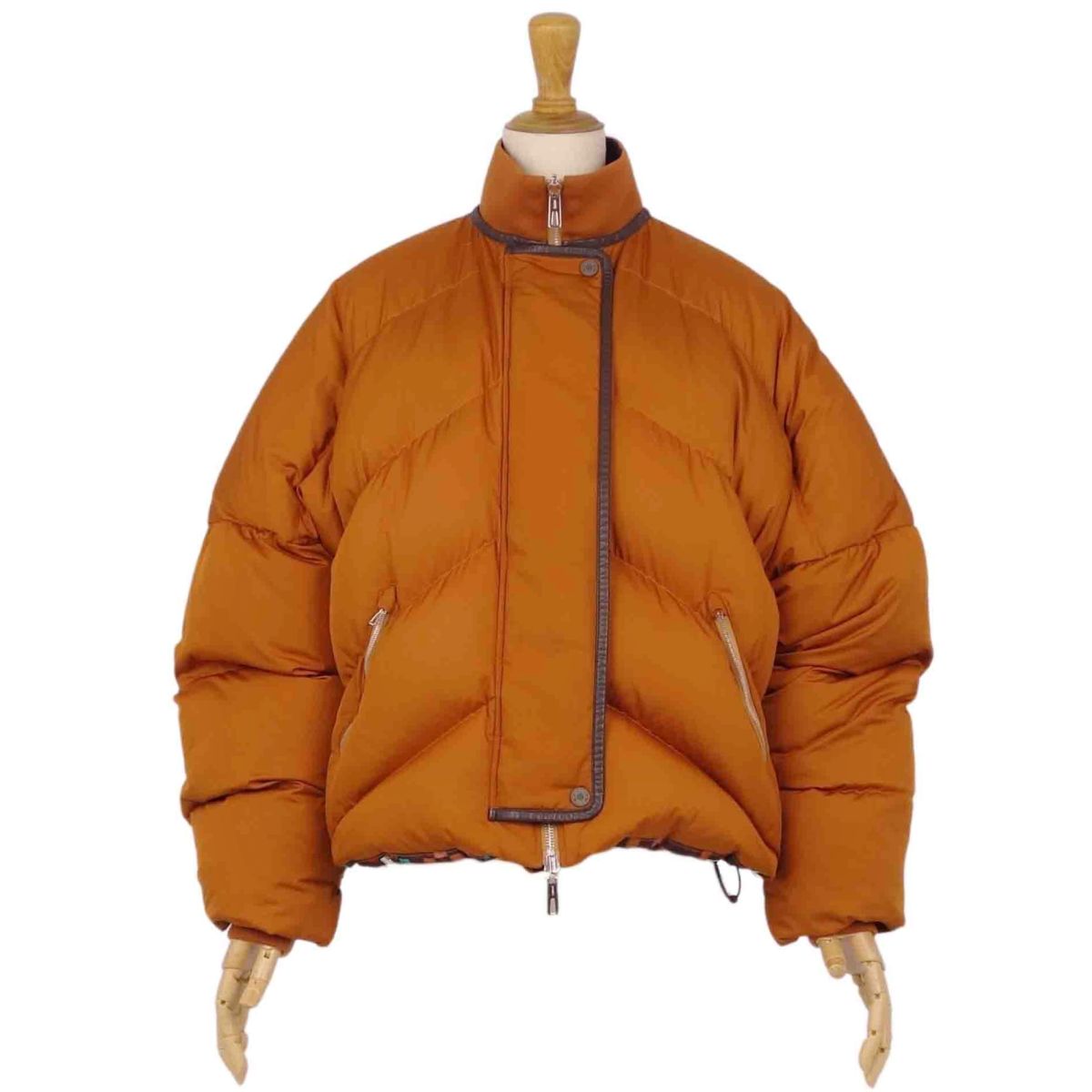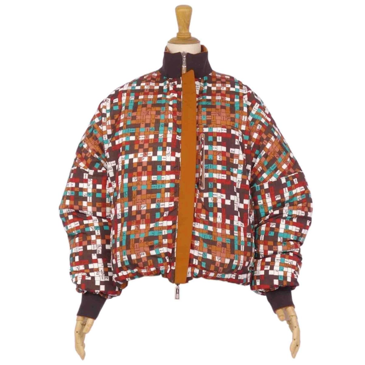 エルメス HERMES ジャケット ダウンジャケット リバーシブル ボルデュック柄 ジップアップ アウター レディース テラコッタ/マルチカラー サイズ38(M相当)