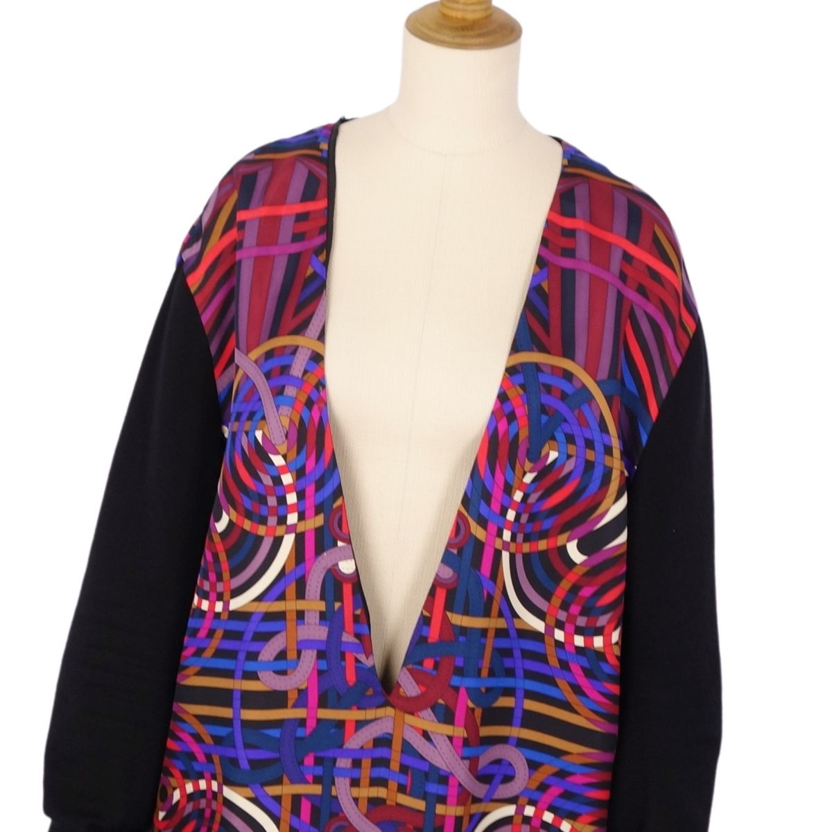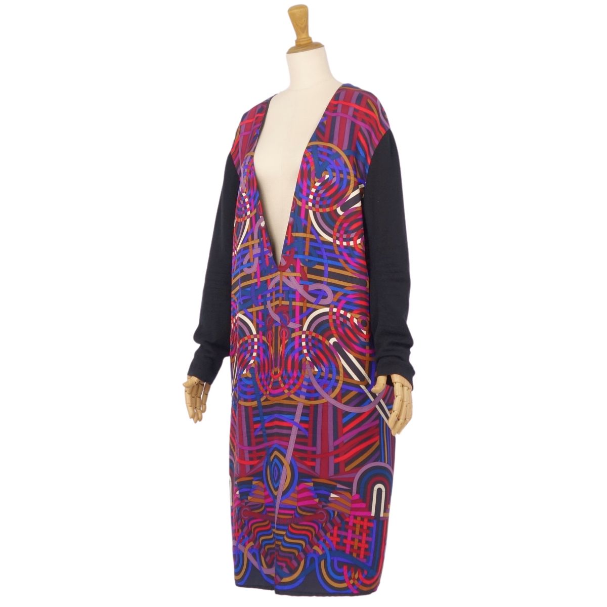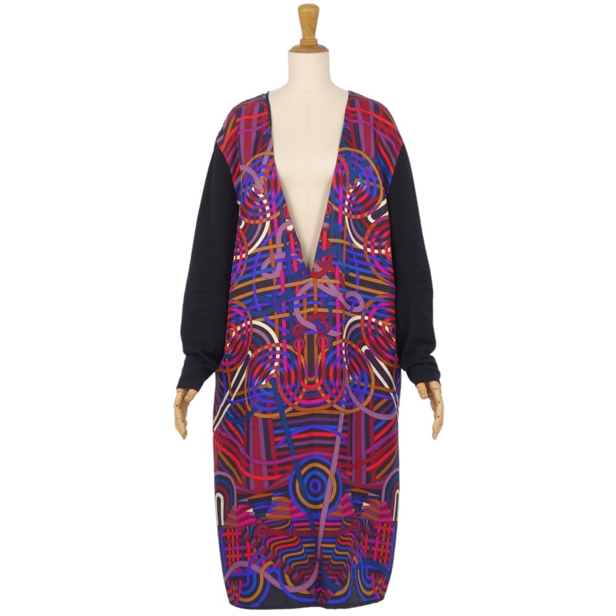 エルメス HERMES ニット ワンピース ロングスリーブ 長袖 Vネック シルク切替 カシミヤ 総柄 トップス レディース マルチカラー サイズ40(M相当)
