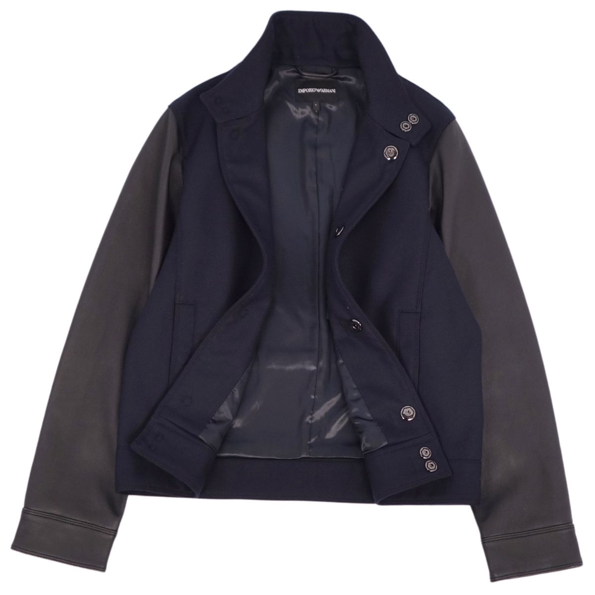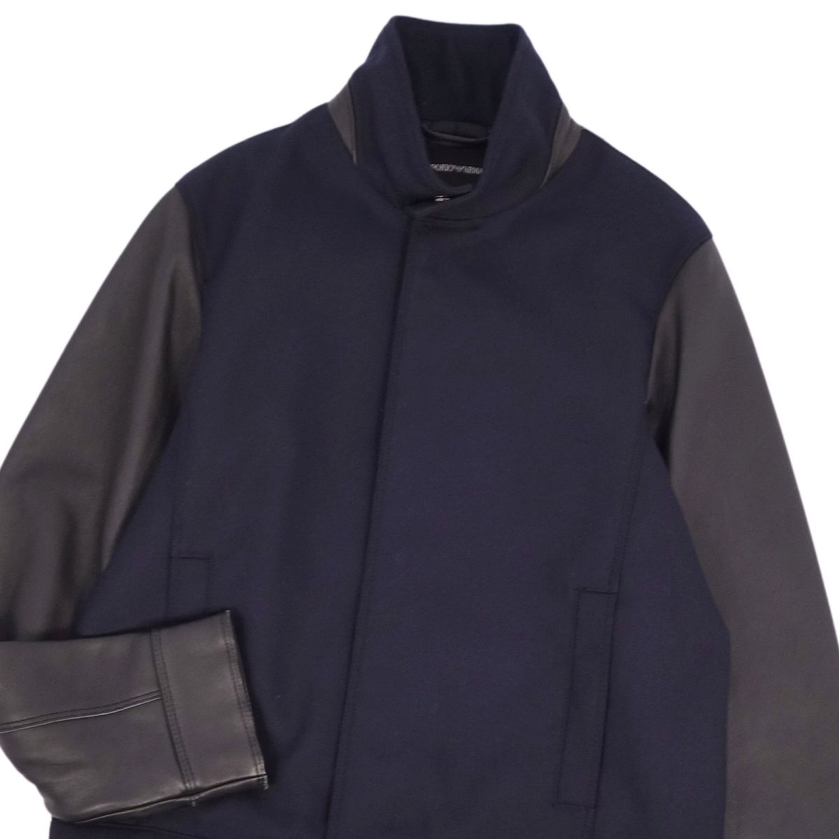 エンポリオアルマーニ EMPORIO ARMANI ジャケット ブルゾン ウール ラムレザー 無地 アウター メンズ ネイビー/ブラック サイズL