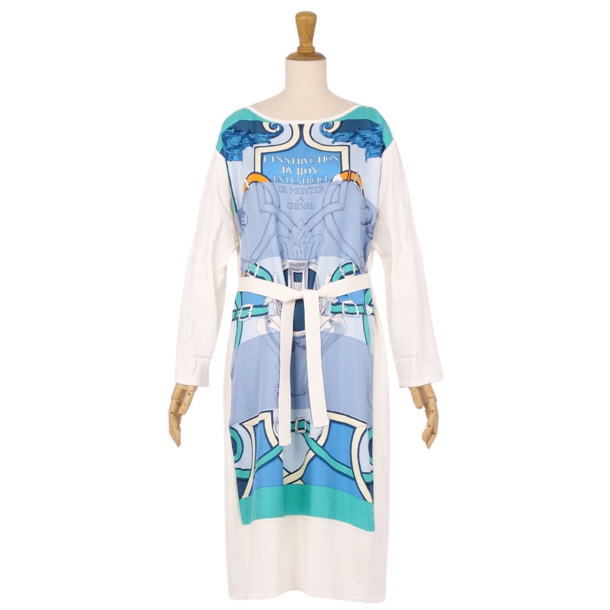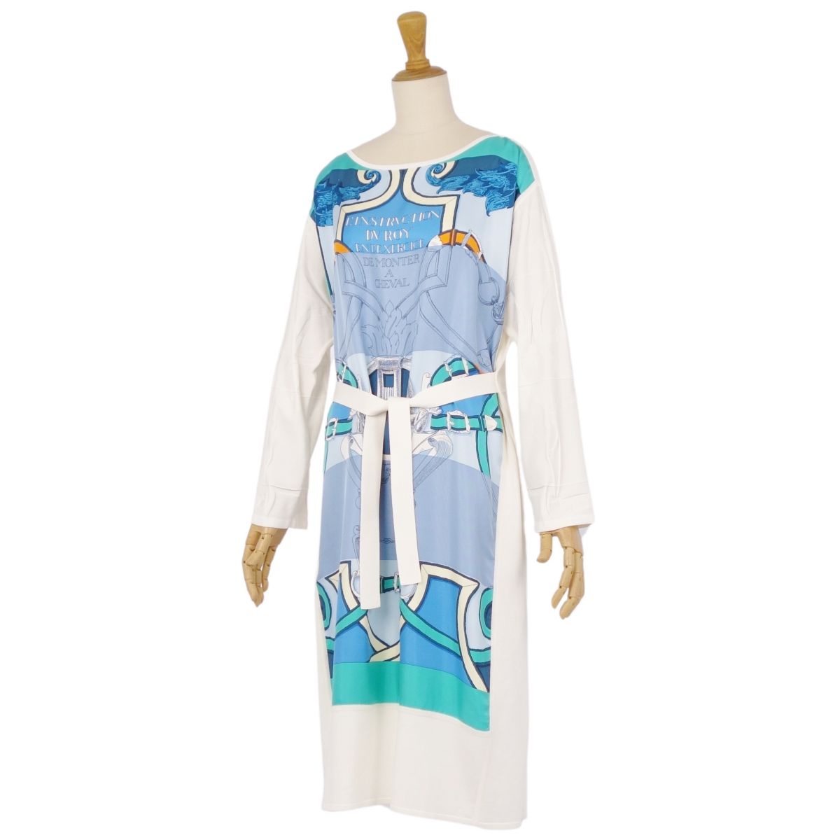 エルメス HERMES ワンピース ベルト付き L’INSTRVCTION DV ROY 帝王学 ツイルレーヌ シルク トップス レディース マルチカラー サイズ38(M相当)
