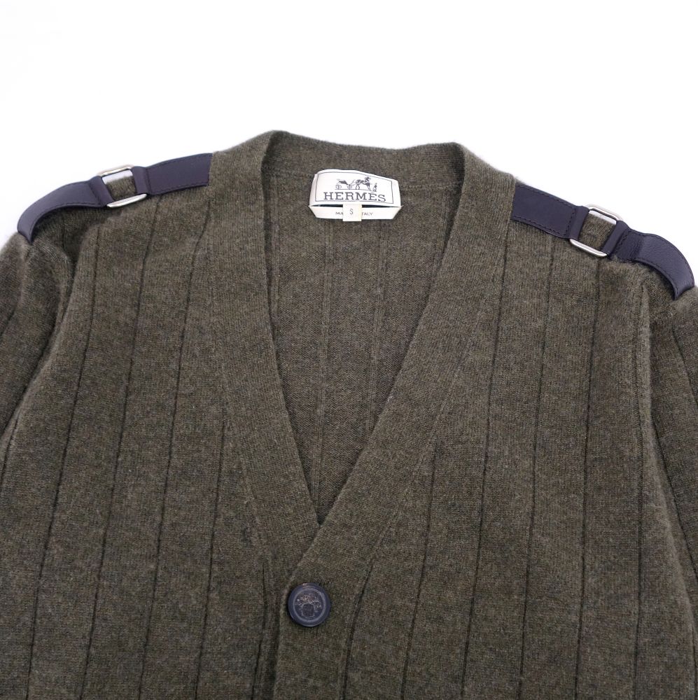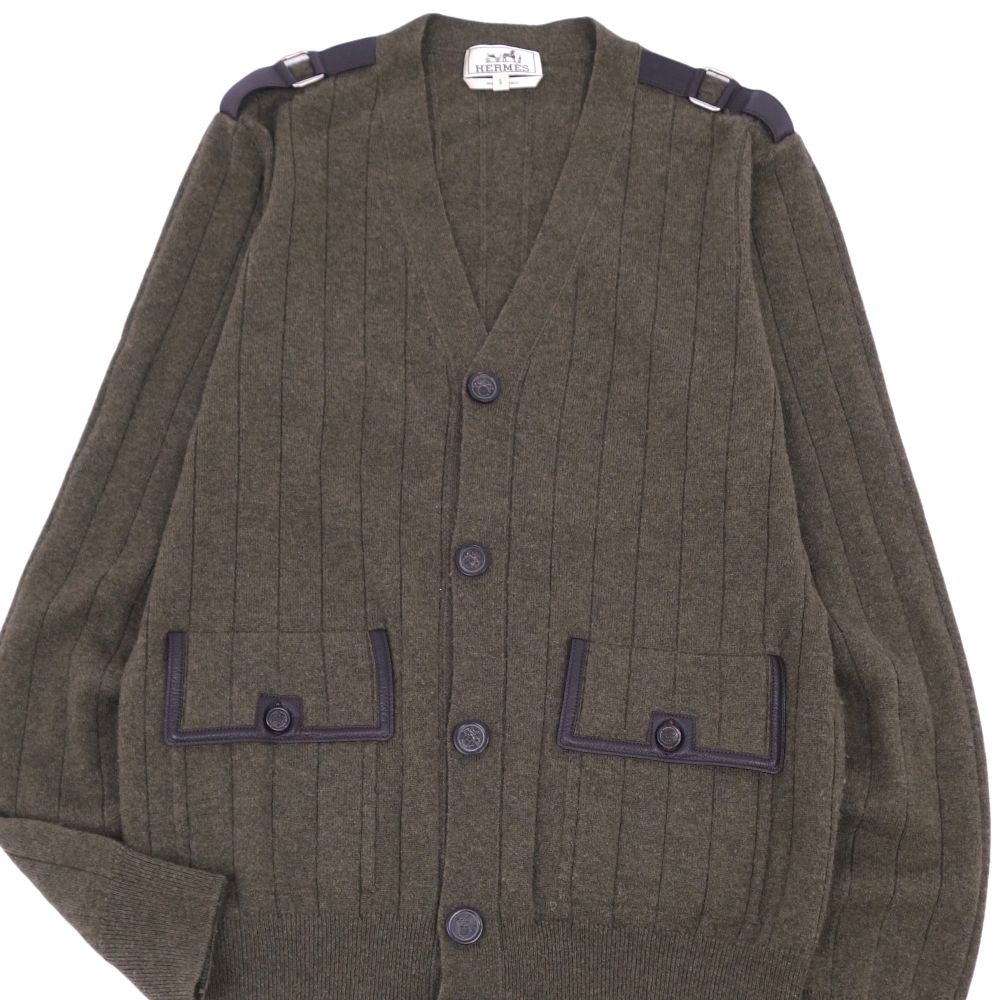 エルメス HERMES カーディガン ニット カシミヤ レザー トップス メンズ イタリア製 カーキグリーン サイズS