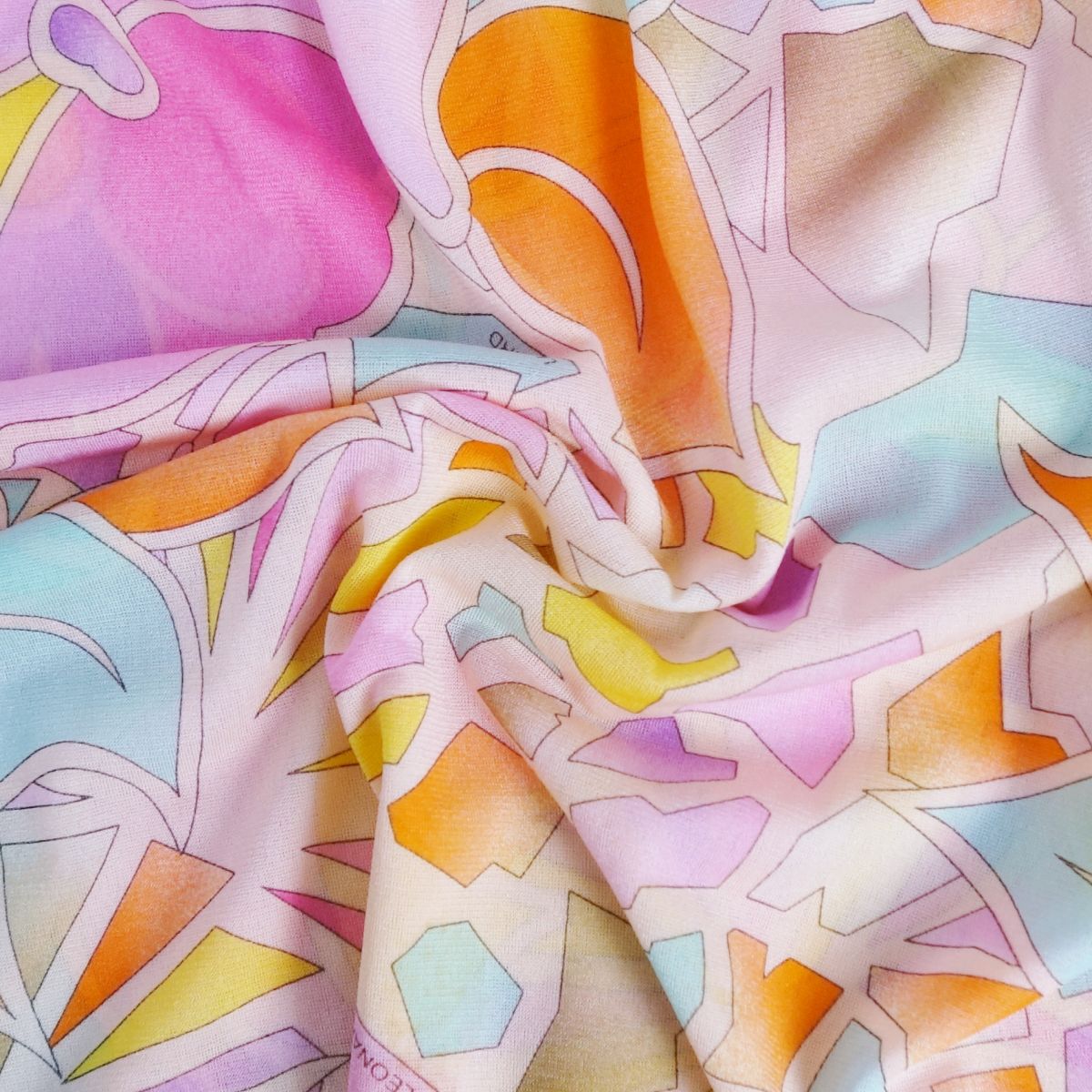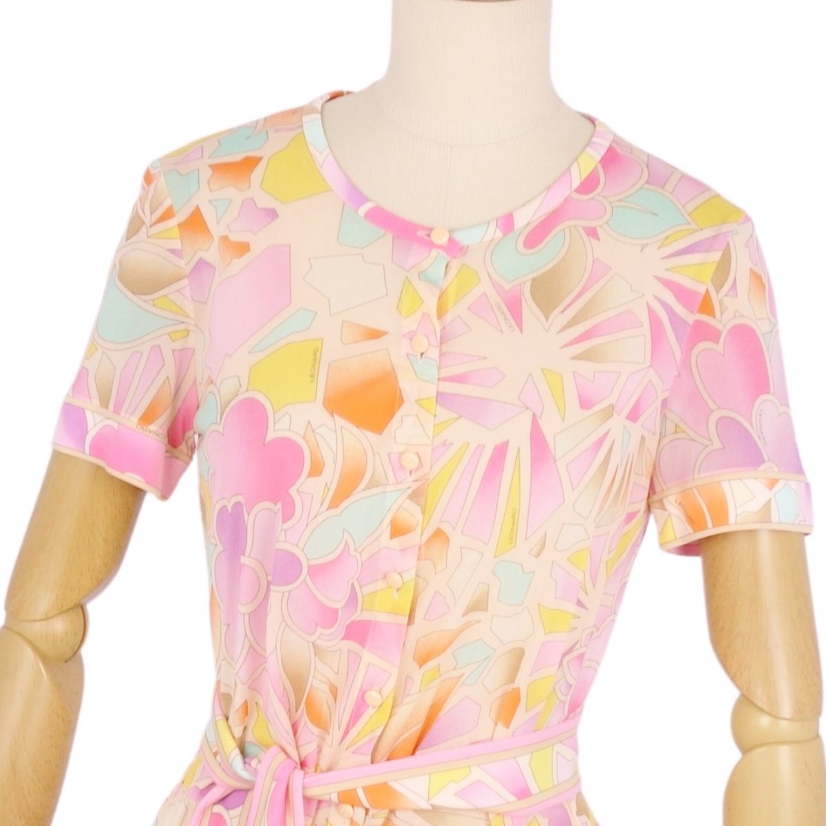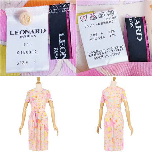 レオナール LEONARD FASHION ワンピース ドレス 半袖 ショートスリーブ 総柄 シアー シースルー ジャージー トップス レディース マルチカラー サイズ1(S相当)