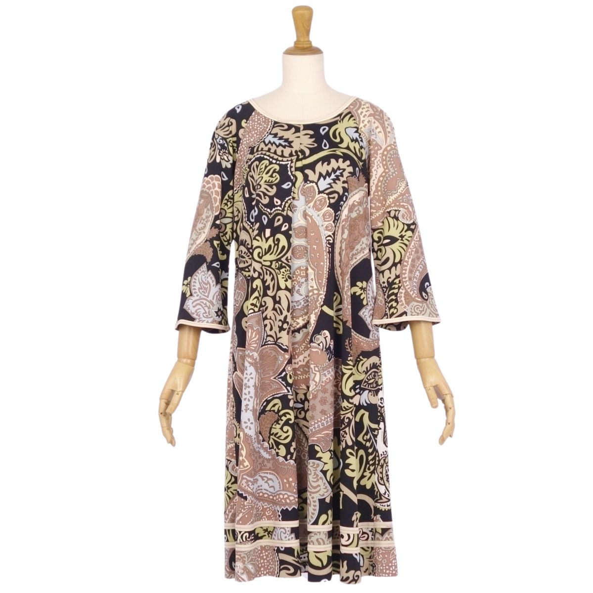 商品名 【極美品】レオナール LEONARD FASHION ワンピース 七分丈 総柄 ジャージー トップス レディース M マルチカラー【中古】