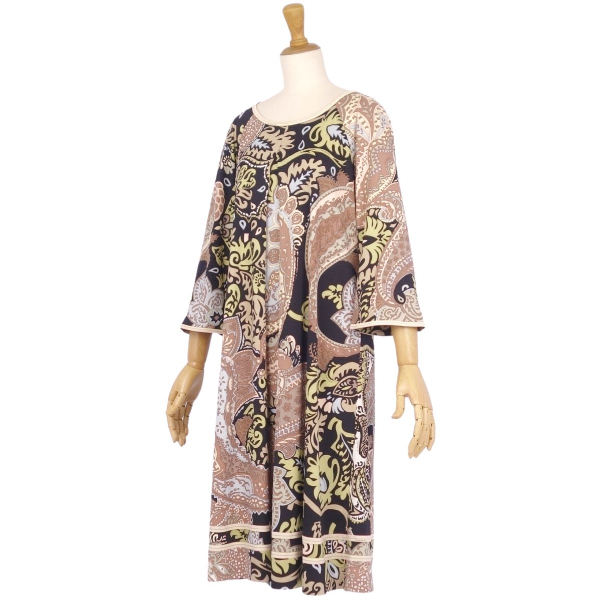 レオナール LEONARD FASHION ワンピース 七分丈 総柄 ジャージー トップス レディース マルチカラー サイズM