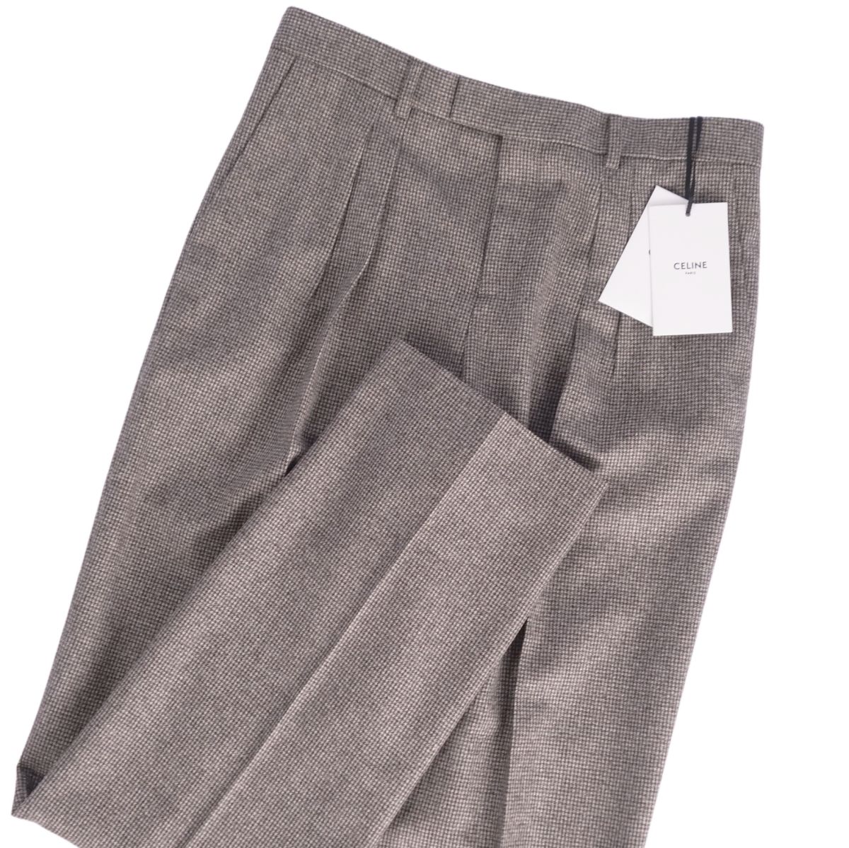 セリーヌ CELINE パンツ ロングパンツ ウール フラノ 千鳥格子 ボトムス レディース イタリア製 グレー サイズ38(M相当)