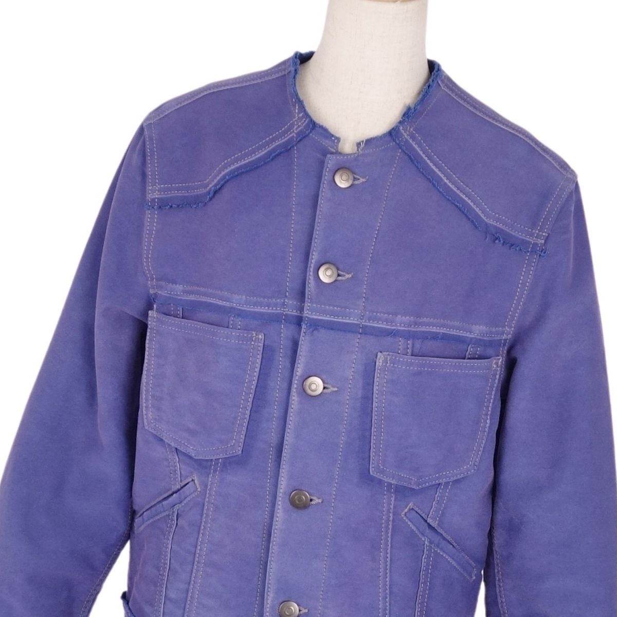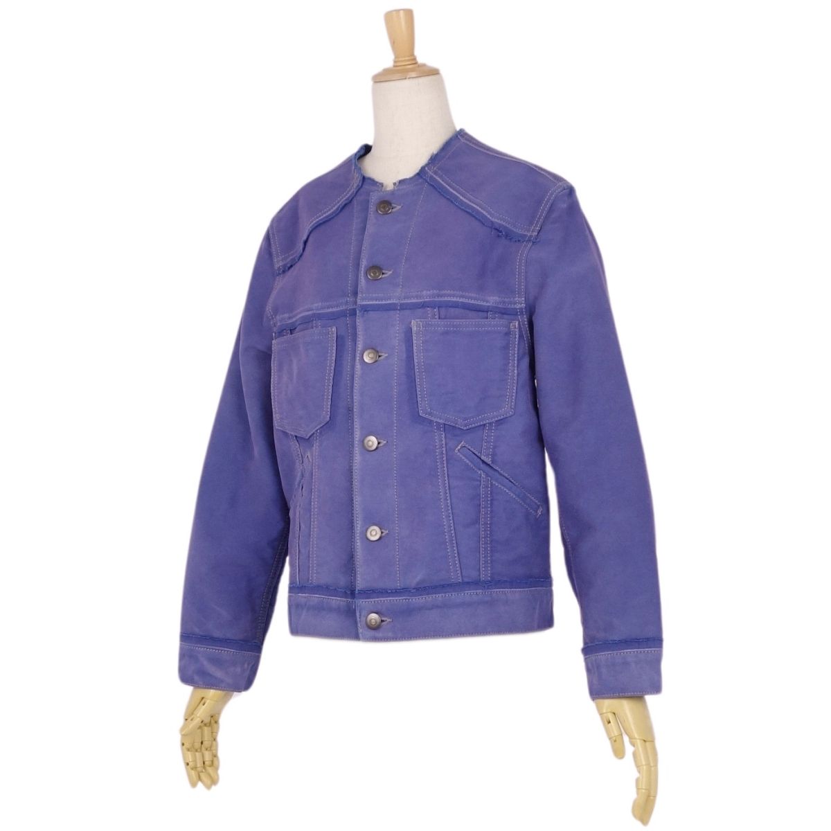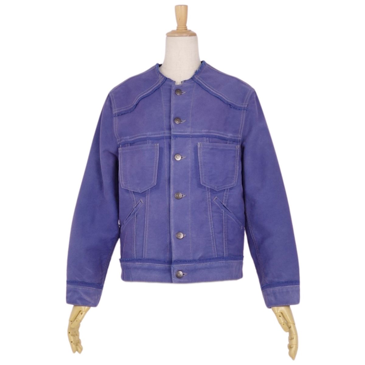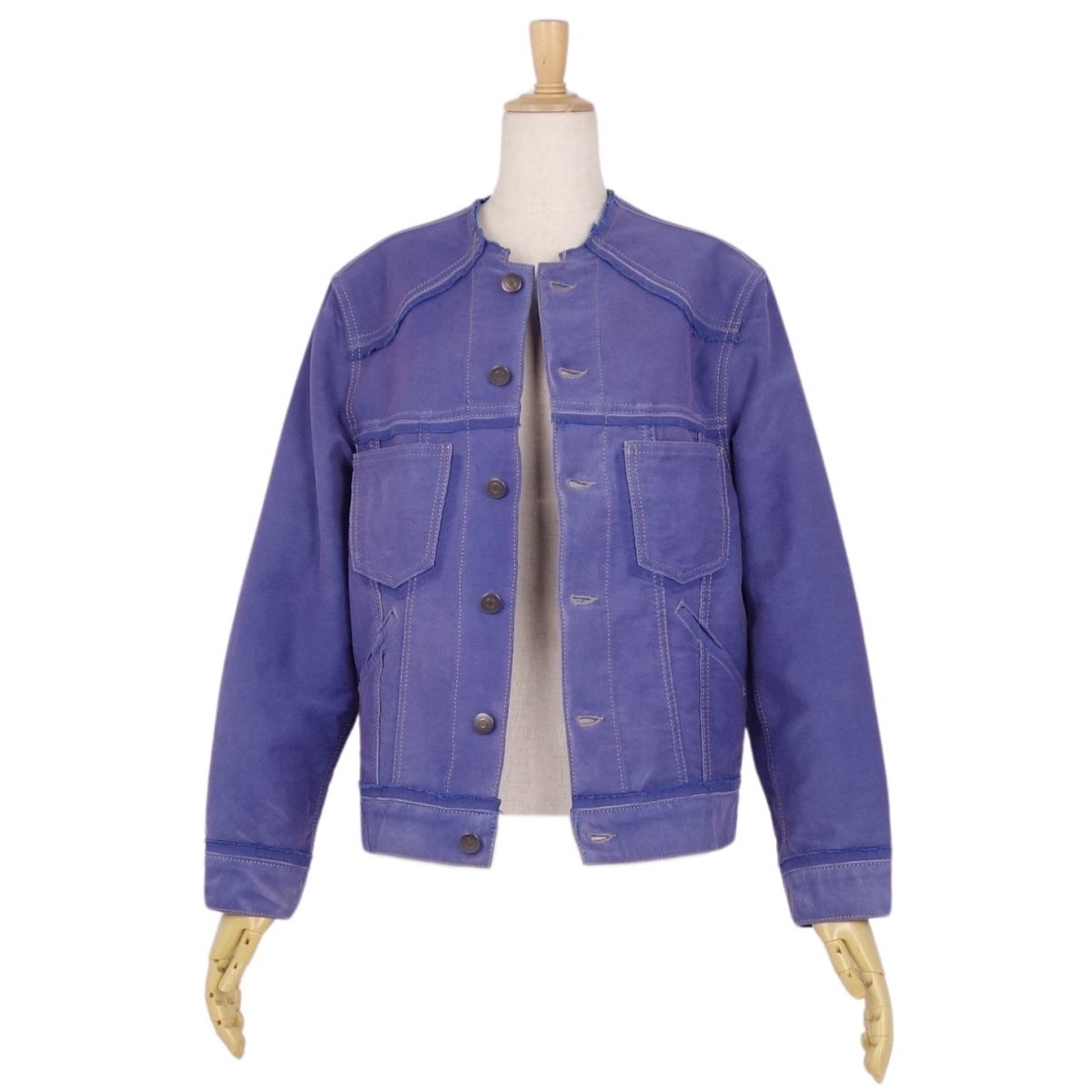 メゾンマルジェラ Maison Margiela ジャケット 2023 デニムジャケット ノーカラー ガーメントダイ モールスキンコットン アウター レディース ブルー サイズ40(M相当)