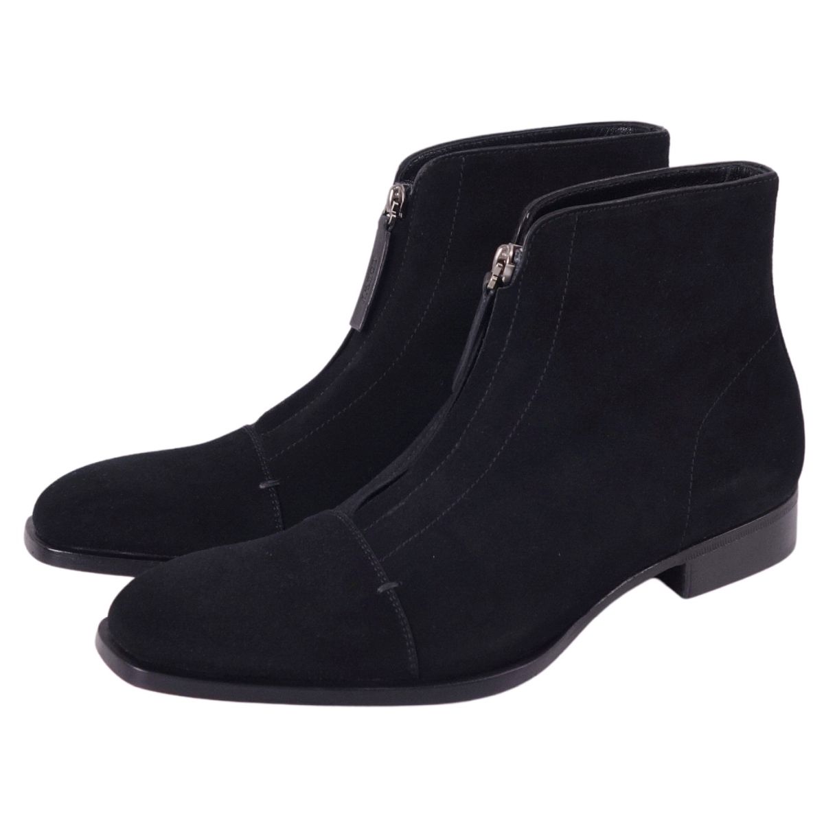 ロエベ LOEWE ブーツ ショートブーツ ジップアップ スウェードレザー シューズ 靴 メンズ イタリア製 ブラック サイズ40.5(26cm相当)