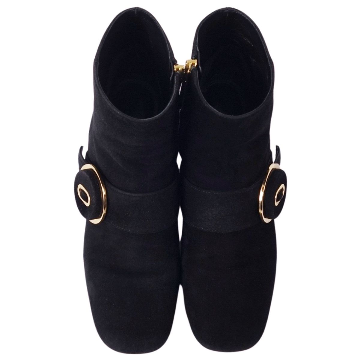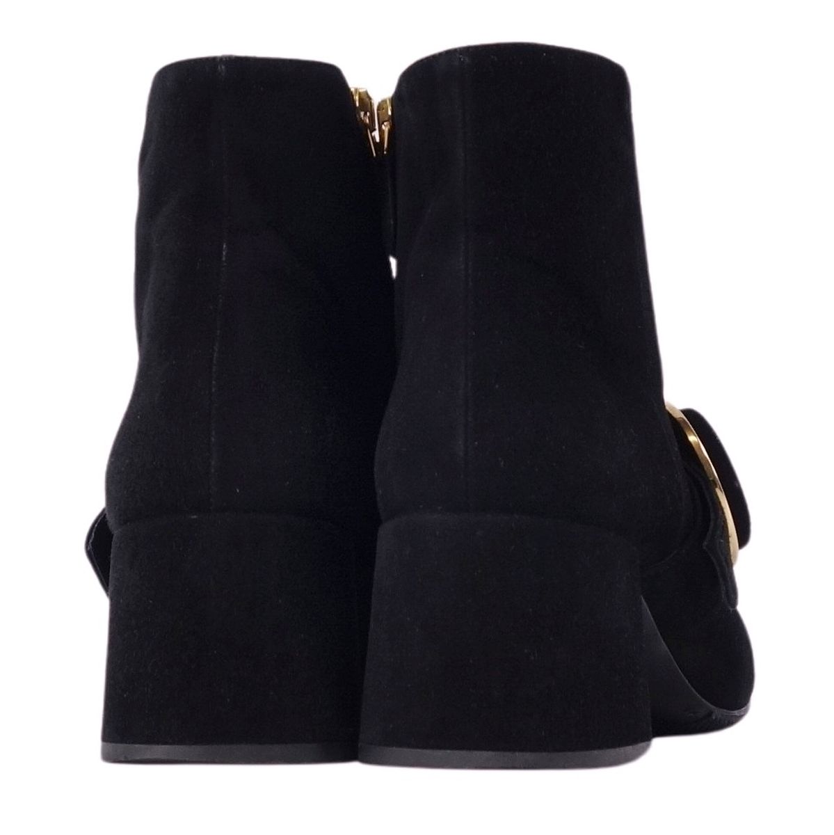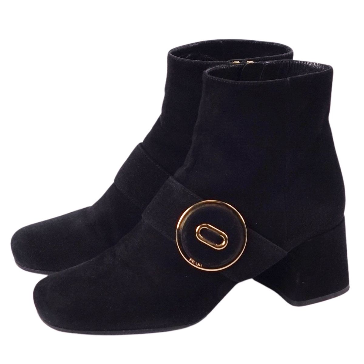 プラダ PRADA ブーツ ショートブーツ スウェードレザー ヒール シューズ 靴 レディース イタリア製 ブラック サイズ34.5(21.5cm相当)