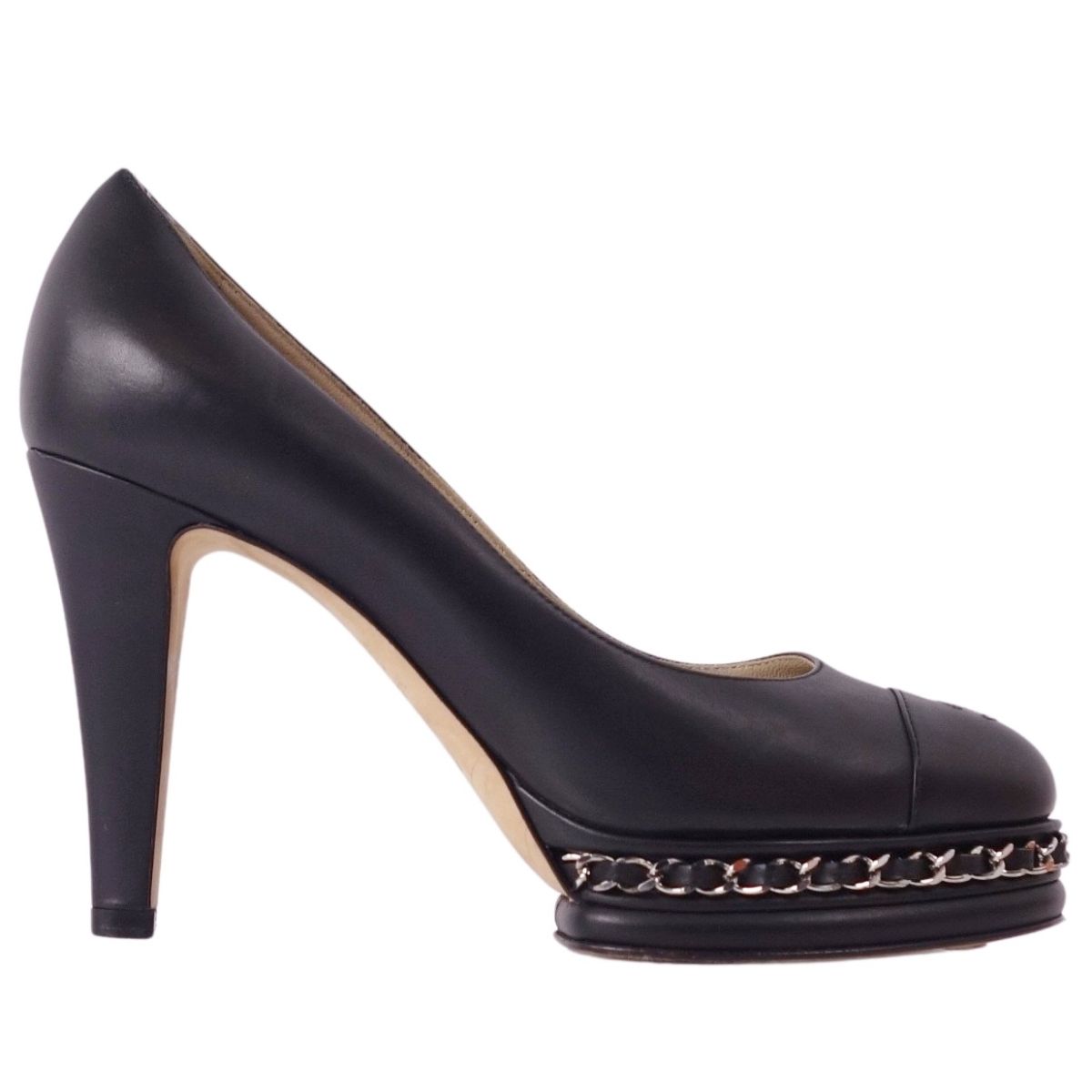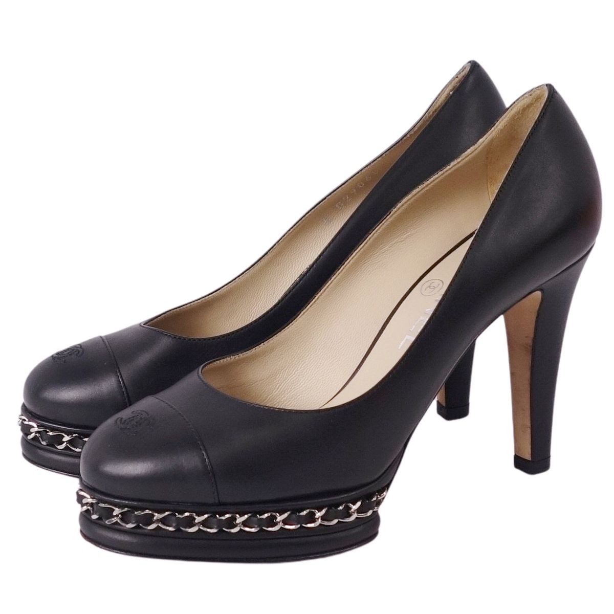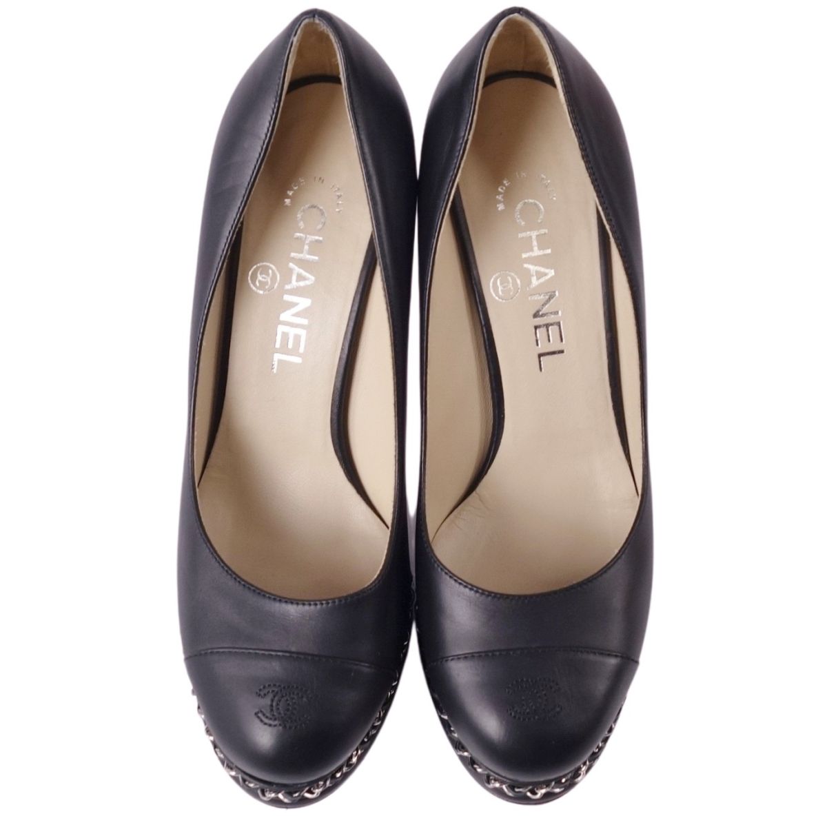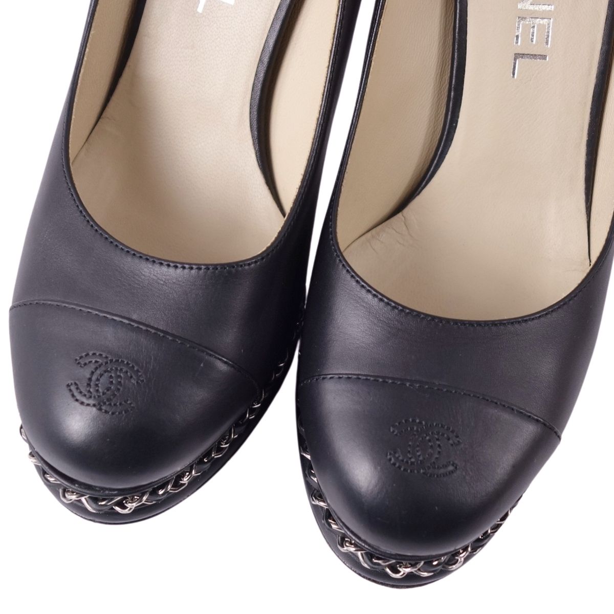シャネル CHANEL パンプス 13P G29068 ココマーク チェーン レザー シューズ 靴 レディース イタリア製 ブラック サイズ36.5C