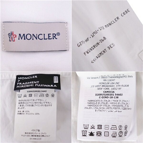 モンクレール フラグメント MONCLER FRAGMENT シャツ 2018 ロングスリーブ 長袖 コットン トップス メンズ ホワイト サイズ4(XL相当)