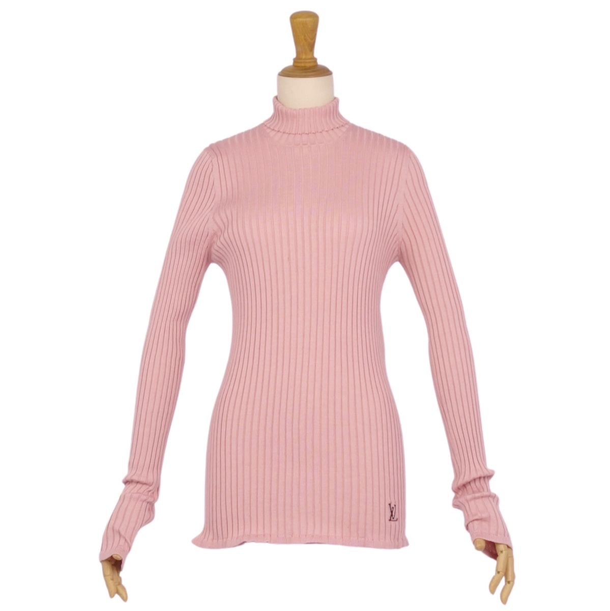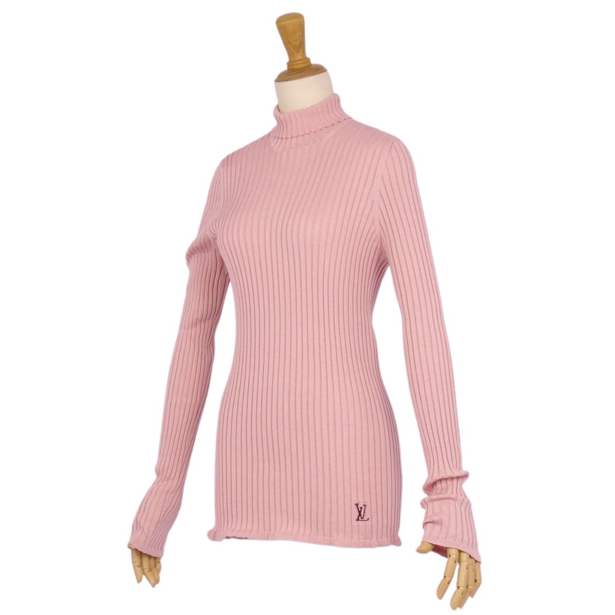 ルイヴィトン LOUIS VUITTON ニット セーター ハイネック LVロゴ ウール シルク トップス レディース イタリア製 ピンク サイズL