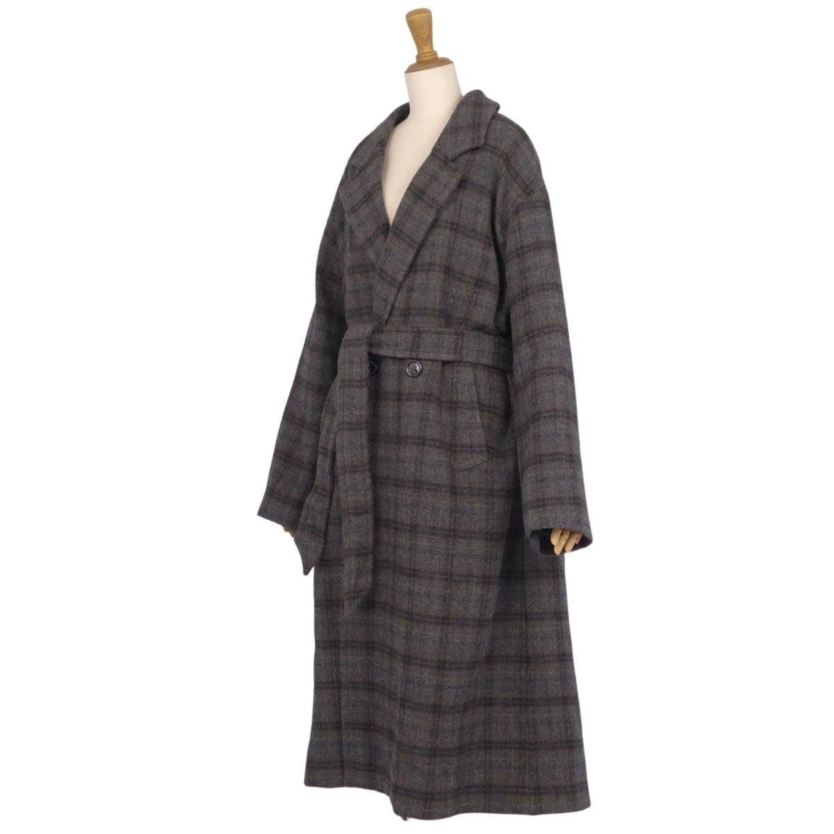 セリーヌ CELINE コート ロングコート オーバーサイズ ダブルブレスト チェック ウール ツイード アウター レディース イタリア製 グレー サイズ34(S相当)