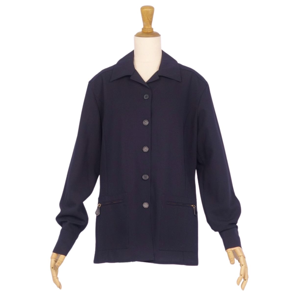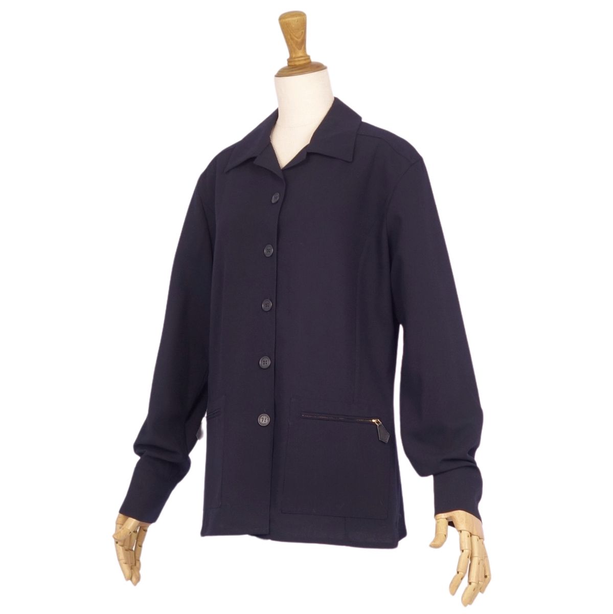 | 商品名 | 【極美品】Vintage エルメス HERMES シャツ ブラウス ロングスリーブ ウールギャバジン トップス レディース フランス製 36(S相当) ダークネイビー【中古】 |