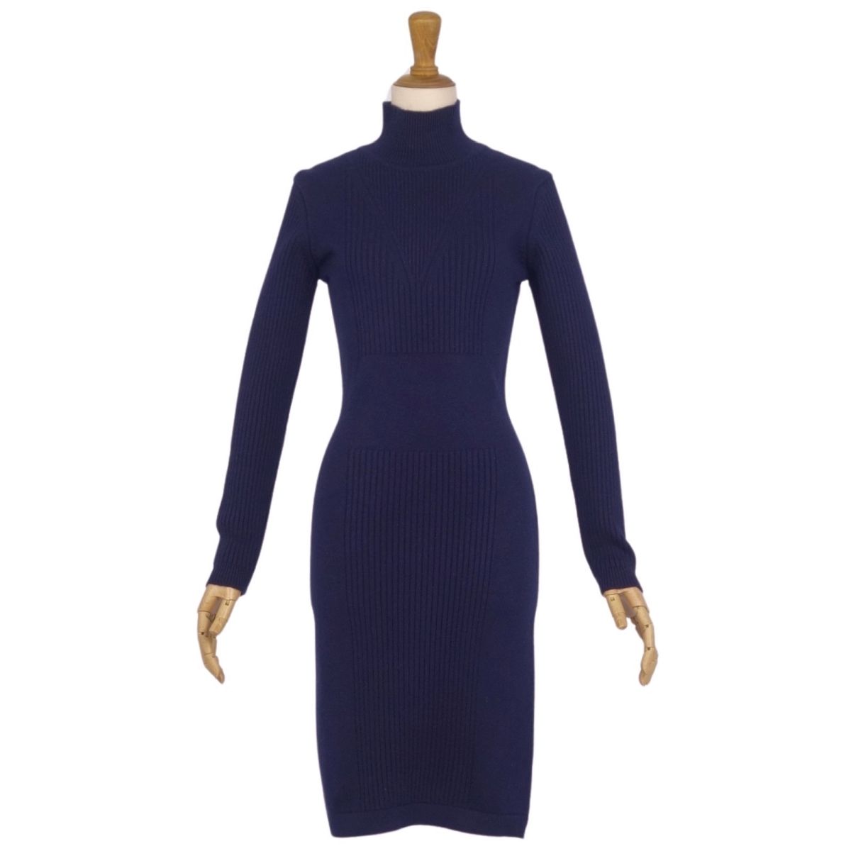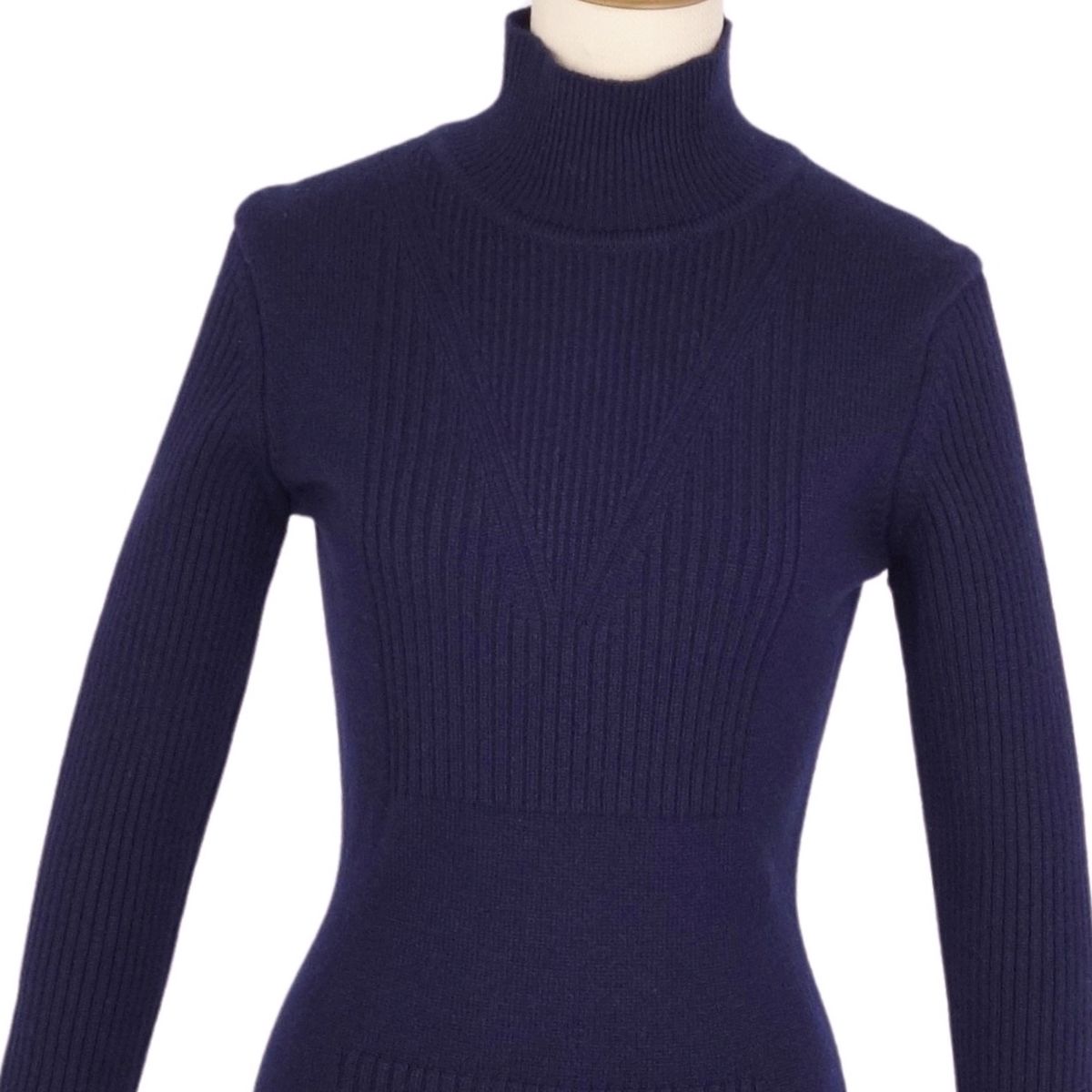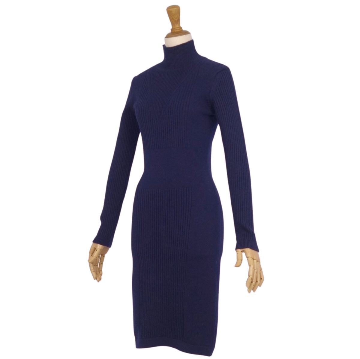 エルメス HERMES ワンピース ハイネック ニット カシミヤ トップス レディース イギリス製 ネイビー サイズ36(S相当)