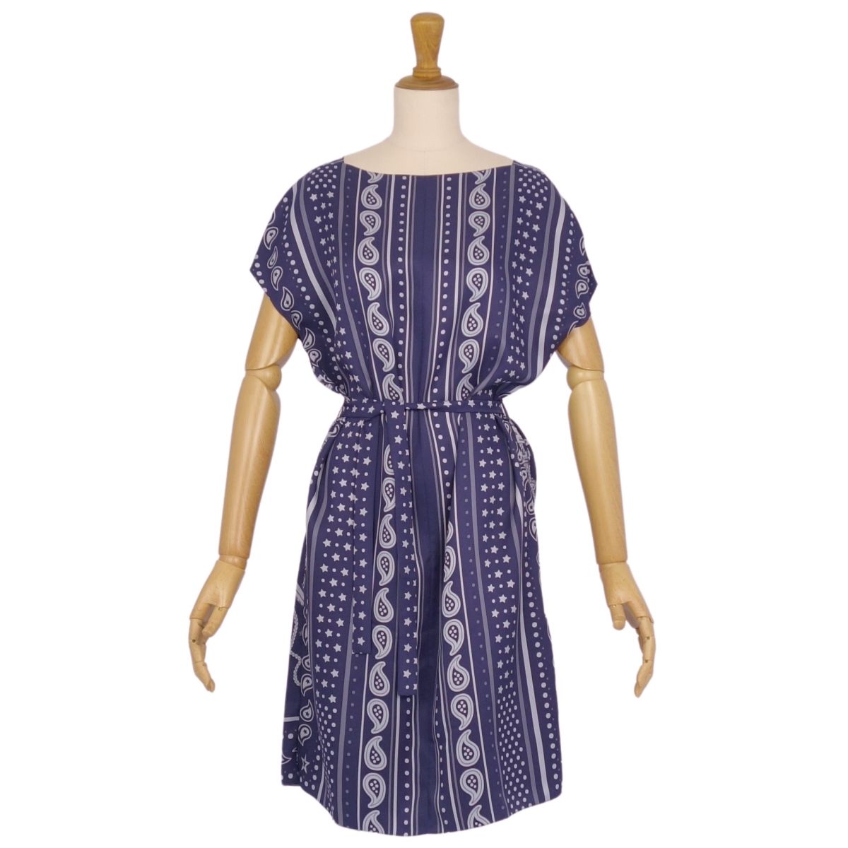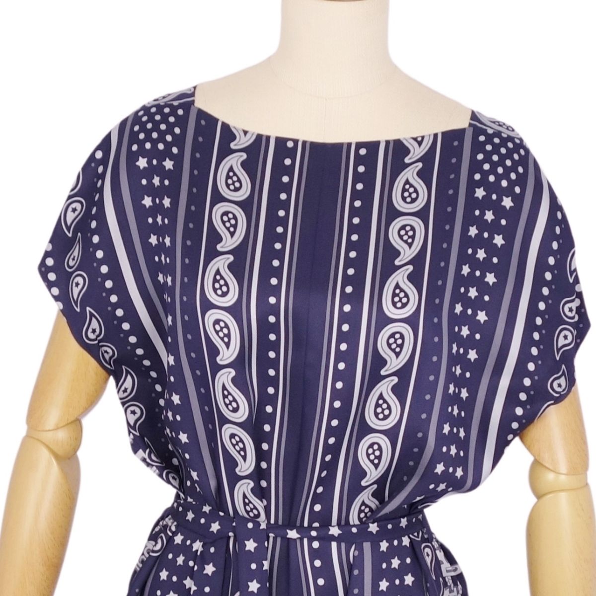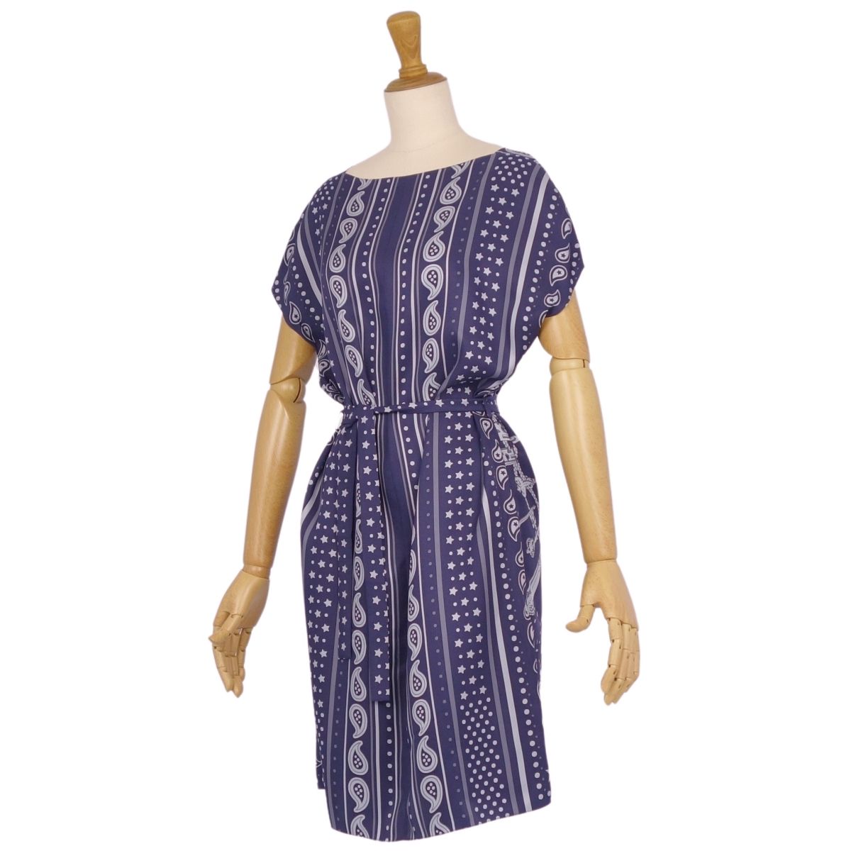 商品名 【極美品】エルメス HERMES ワンピース 20AW ベルト付き レクレ フレンチスリーブ シルクツイル トップス レディース フランス製 34(S相当) ネイビー【中古】
