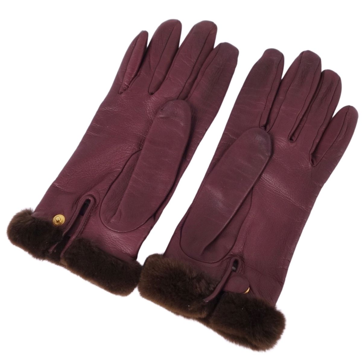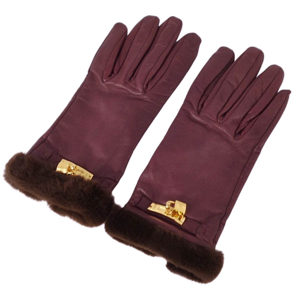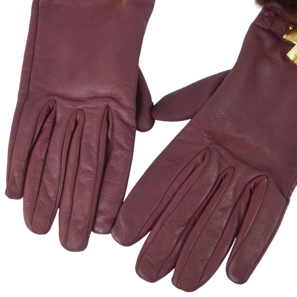 商品名 エルメス HERMES 手袋 グローブ ケリー金具 ミンクファー ラムレザー レディース フランス製 7 ボルドー【中古】