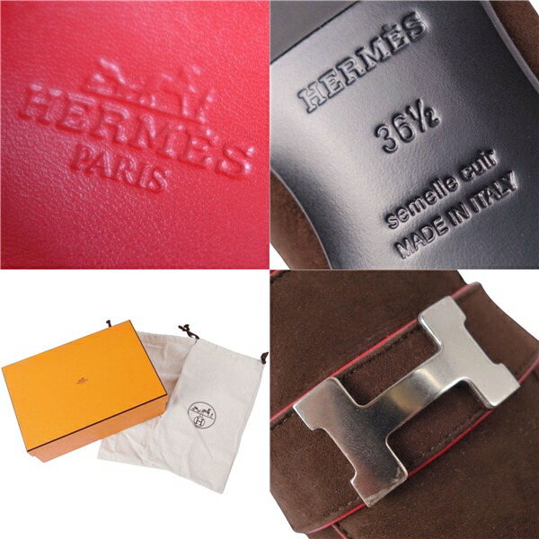 商品名 【新古品】エルメス HERMES ローファー モカシン PARIS パリ コンスタンス Hロゴ金具 スウェード シューズ レディース 36.5(23.5cm相当) ブラウン【中古】
