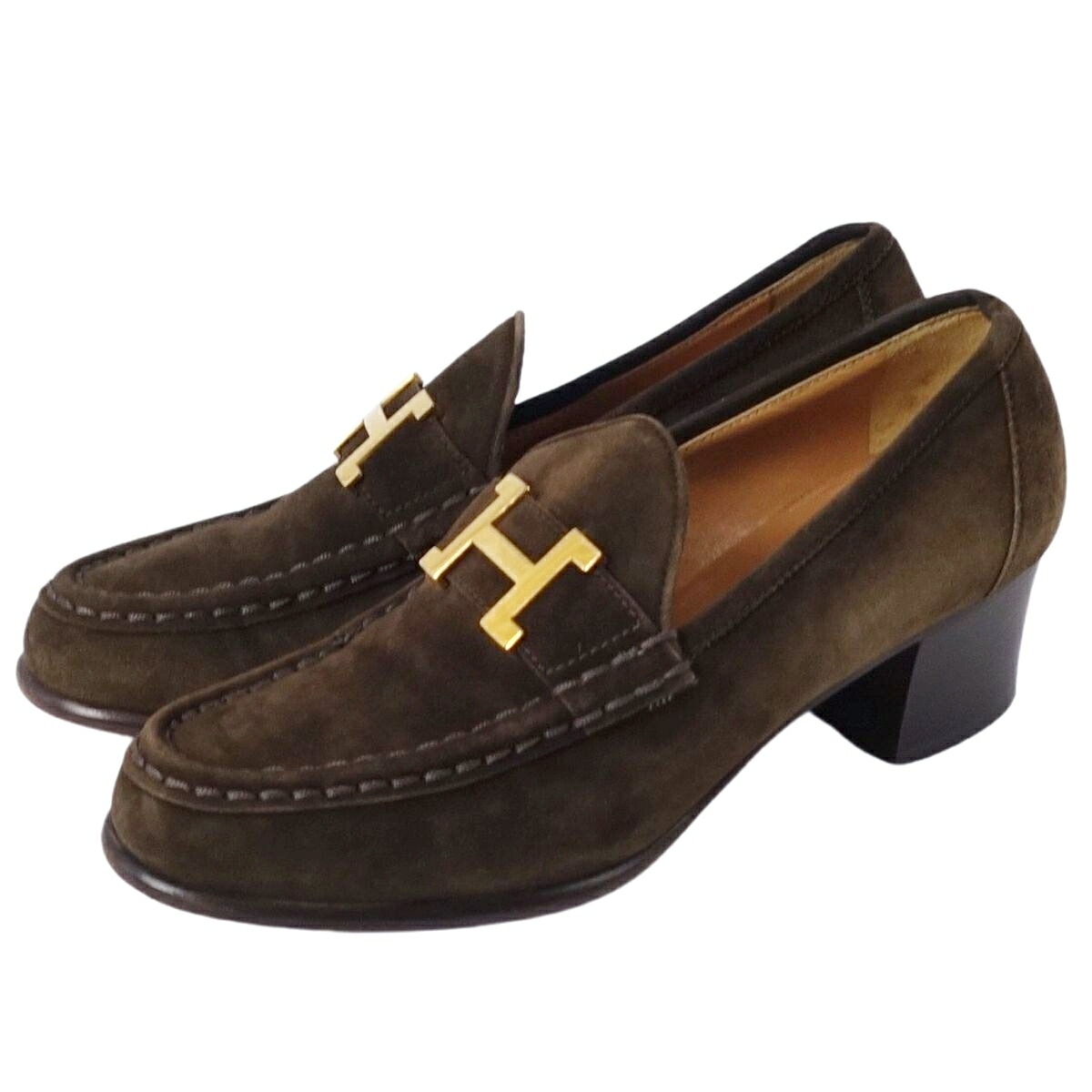 エルメス HERMES ローファー モカシン コンスタンス Hロゴ スウェードレザー ヒール シューズ 靴 レディース カーキブラウン サイズ35(22cm相当)