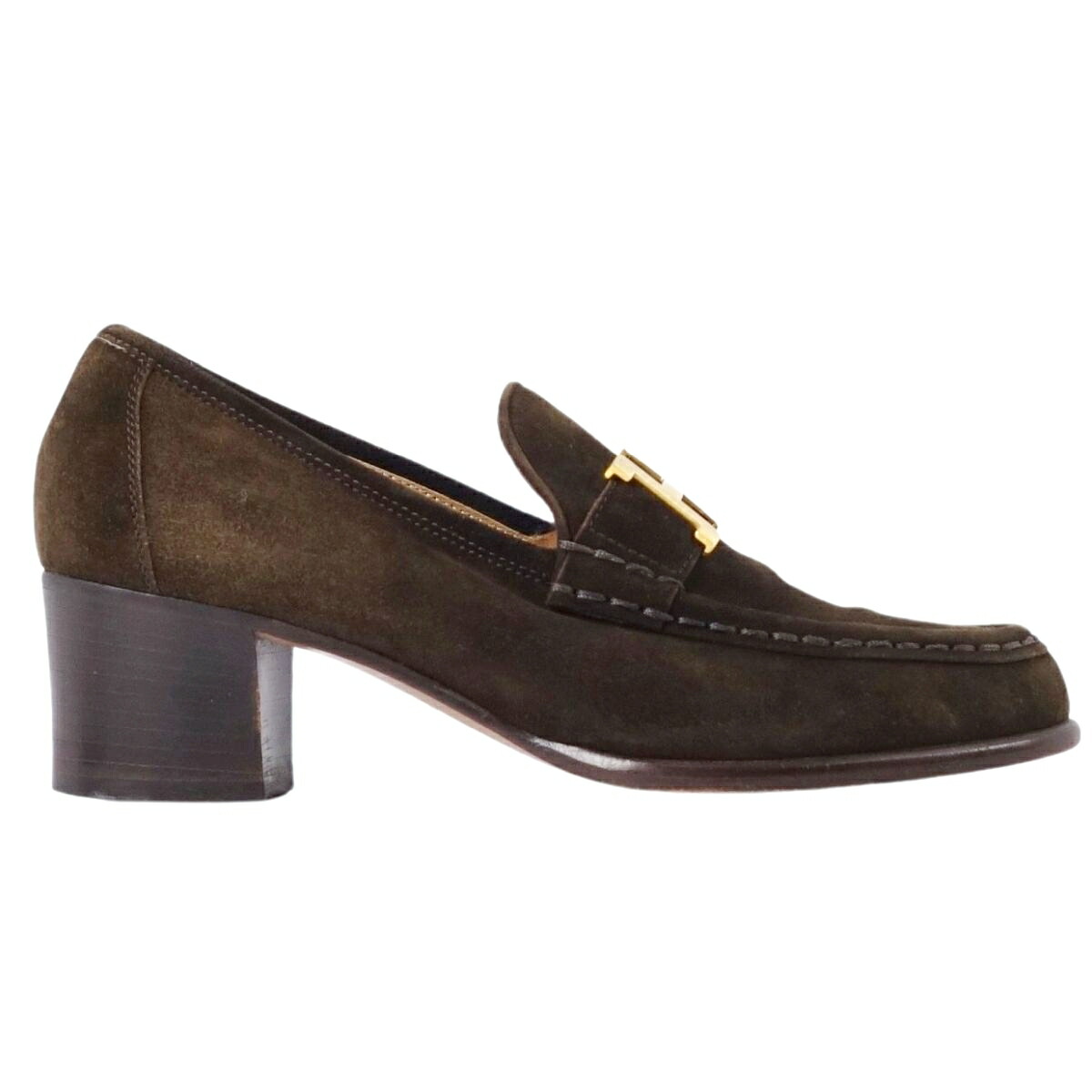 【美品】エルメス HERMES ローファー モカシン コンスタンス Hロゴ スウェードレザー ヒール シューズ 靴 レディース 35(22cm相当) カーキブラウン【中古】