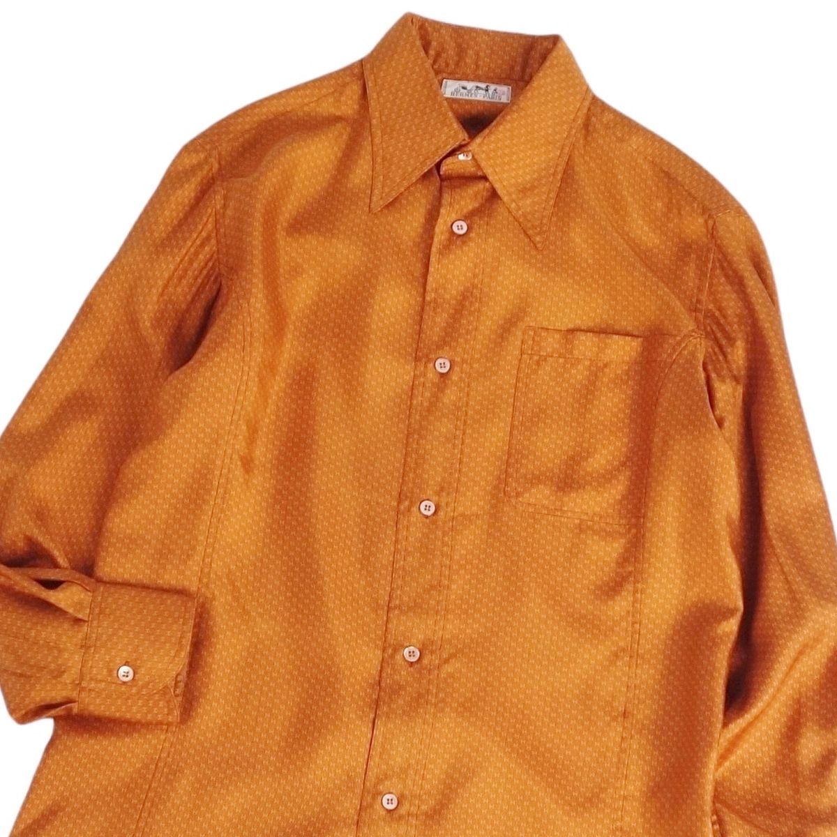 Vintage エルメス HERMES シャツ ロングスリーブ 長袖 Hロゴ シルク100% トップス メンズ フランス製 オレンジ サイズS相当