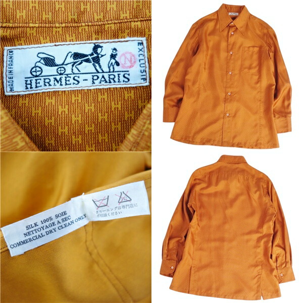 | 商品名 | 【美品】Vintage エルメス HERMES シャツ ロングスリーブ 長袖 Hロゴ シルク100% トップス メンズ フランス製 S相当 オレンジ【中古】 |