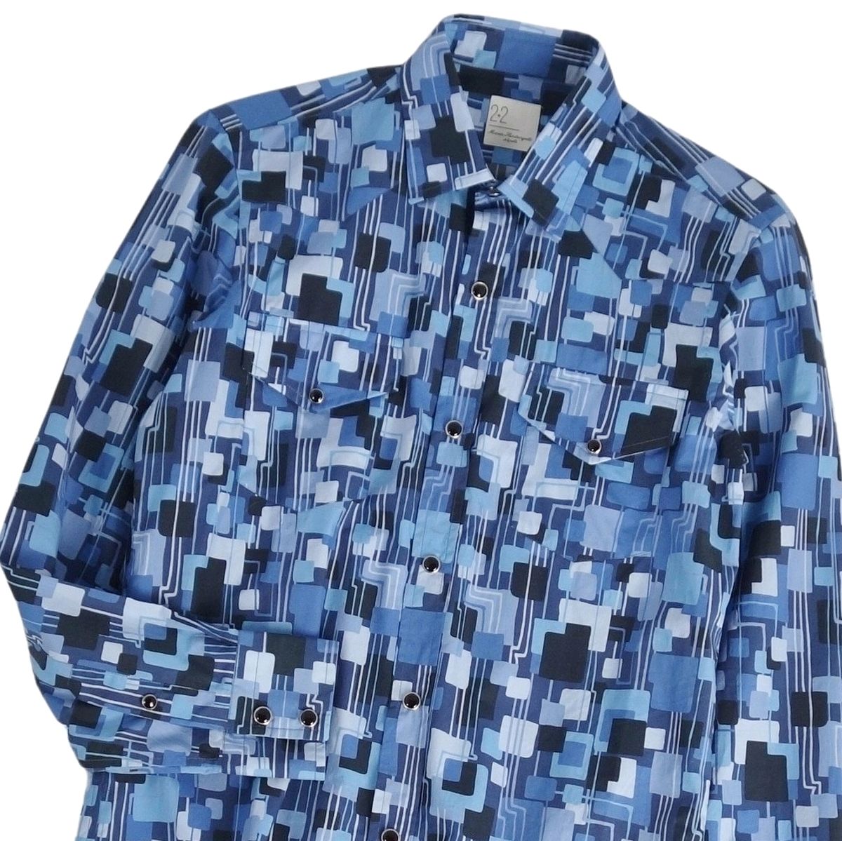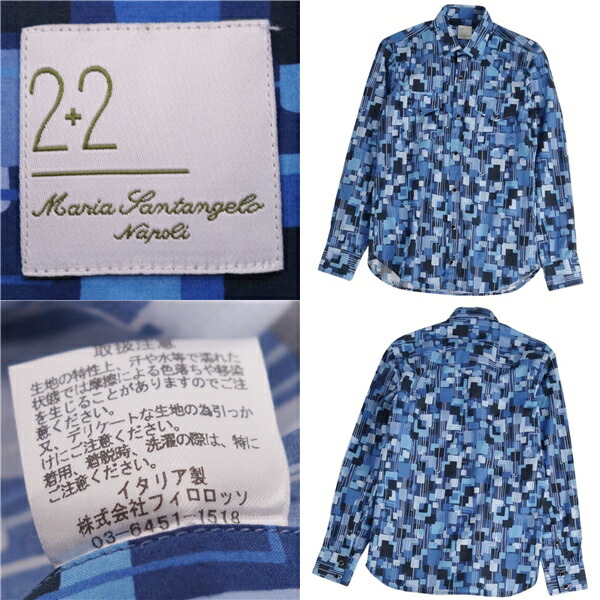 【新古品】マリア サンタンジェロ Maria Santangelo シャツ ロングスリーブ 長袖 コットン 総柄 トップス メンズ イタリア製 39/15.5(L相当) ブルー【中古】