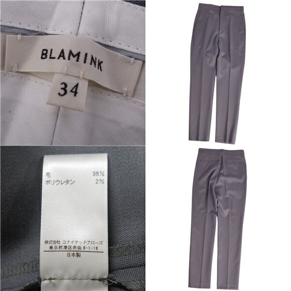 ブラミンク BLAMINK パンツ ロングパンツ スラックスパンツ ウール ボトムス レディース グレー サイズ34(S相当)
