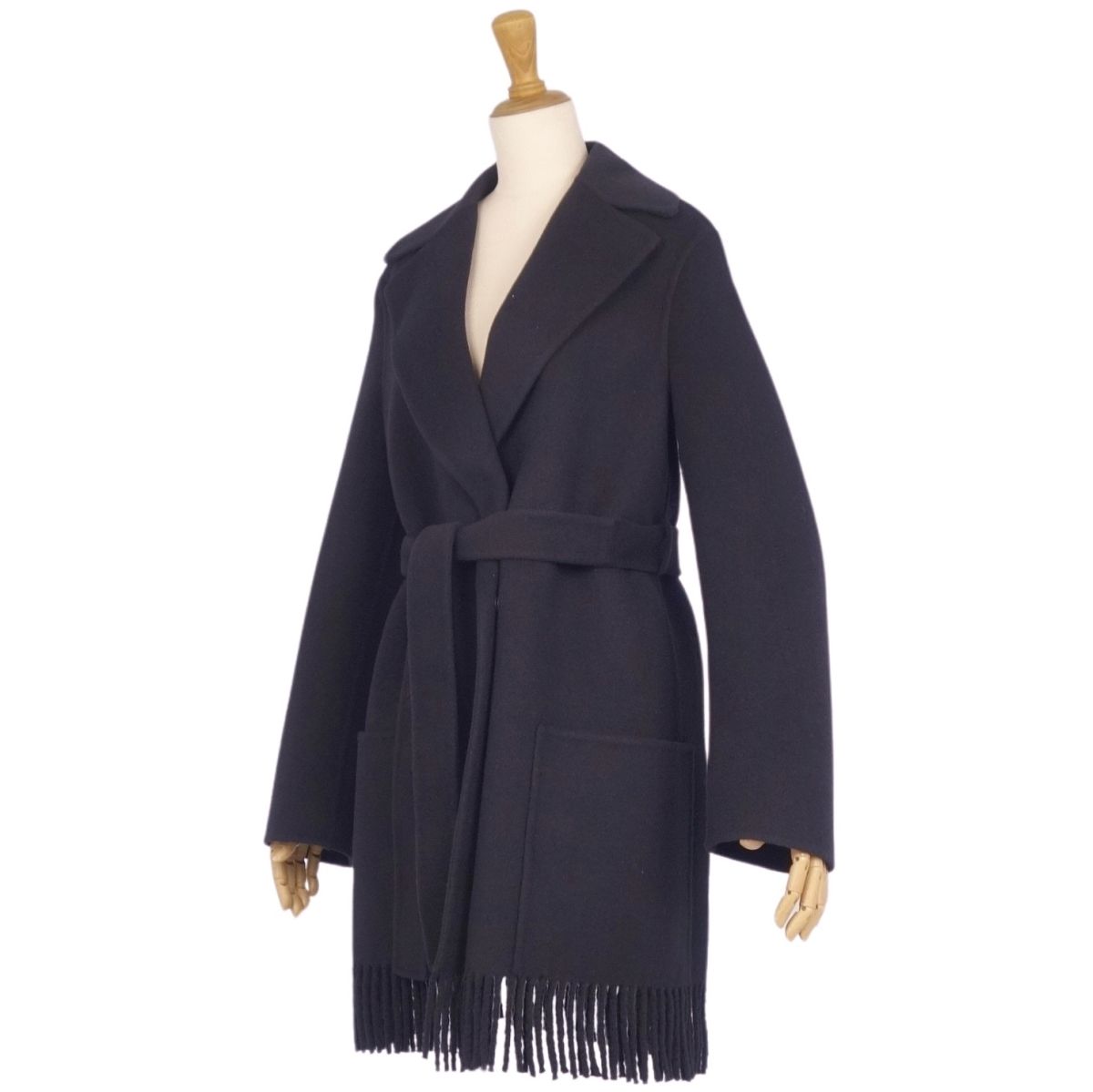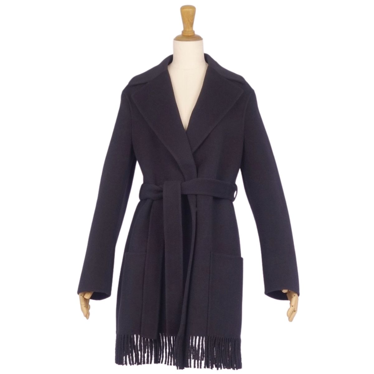 クリスチャンディオール Christian Dior コート 2020 ベルト付き ロングコート ウール ダブルフェイス アウター レディース イタリア製 ブラック サイズI38(M相当)