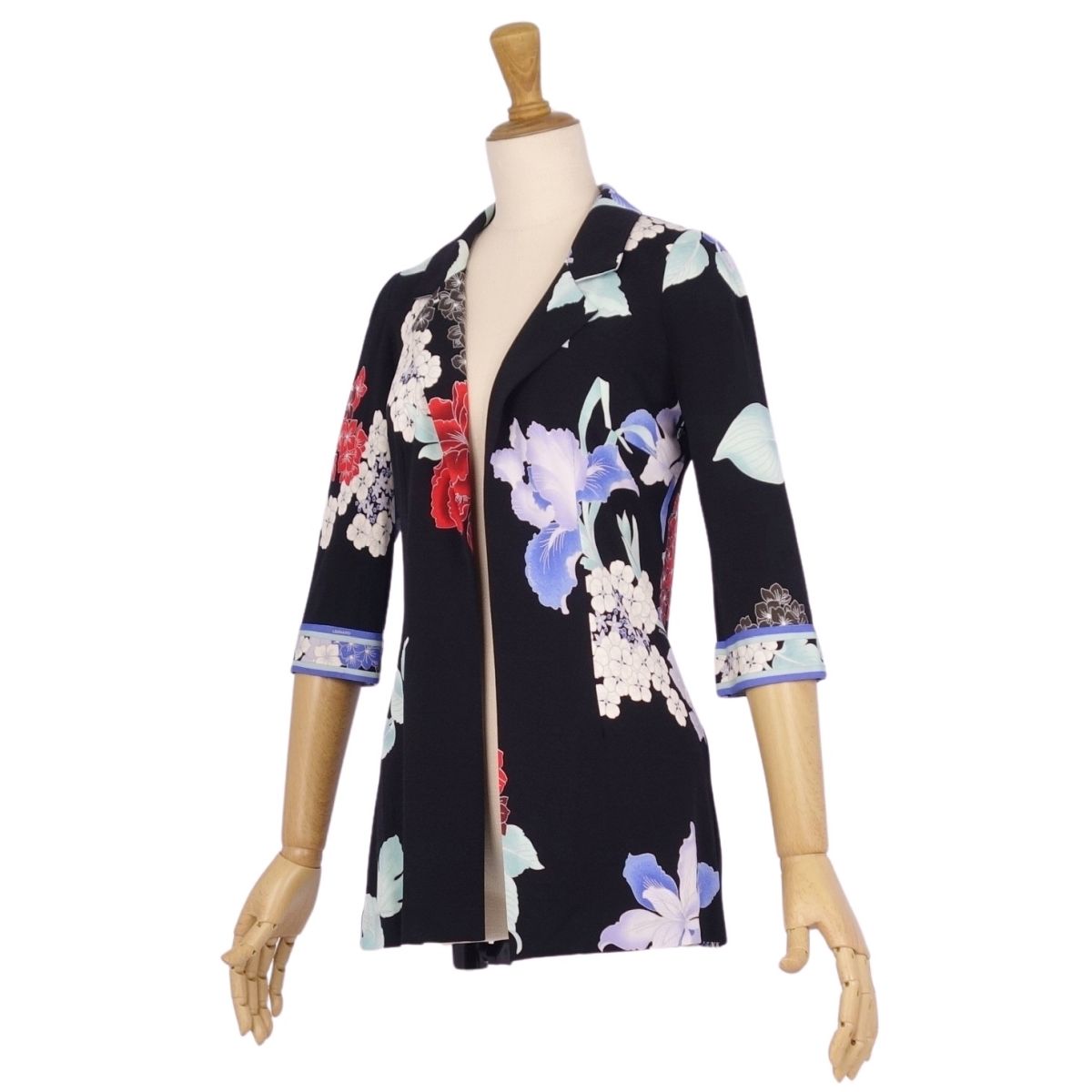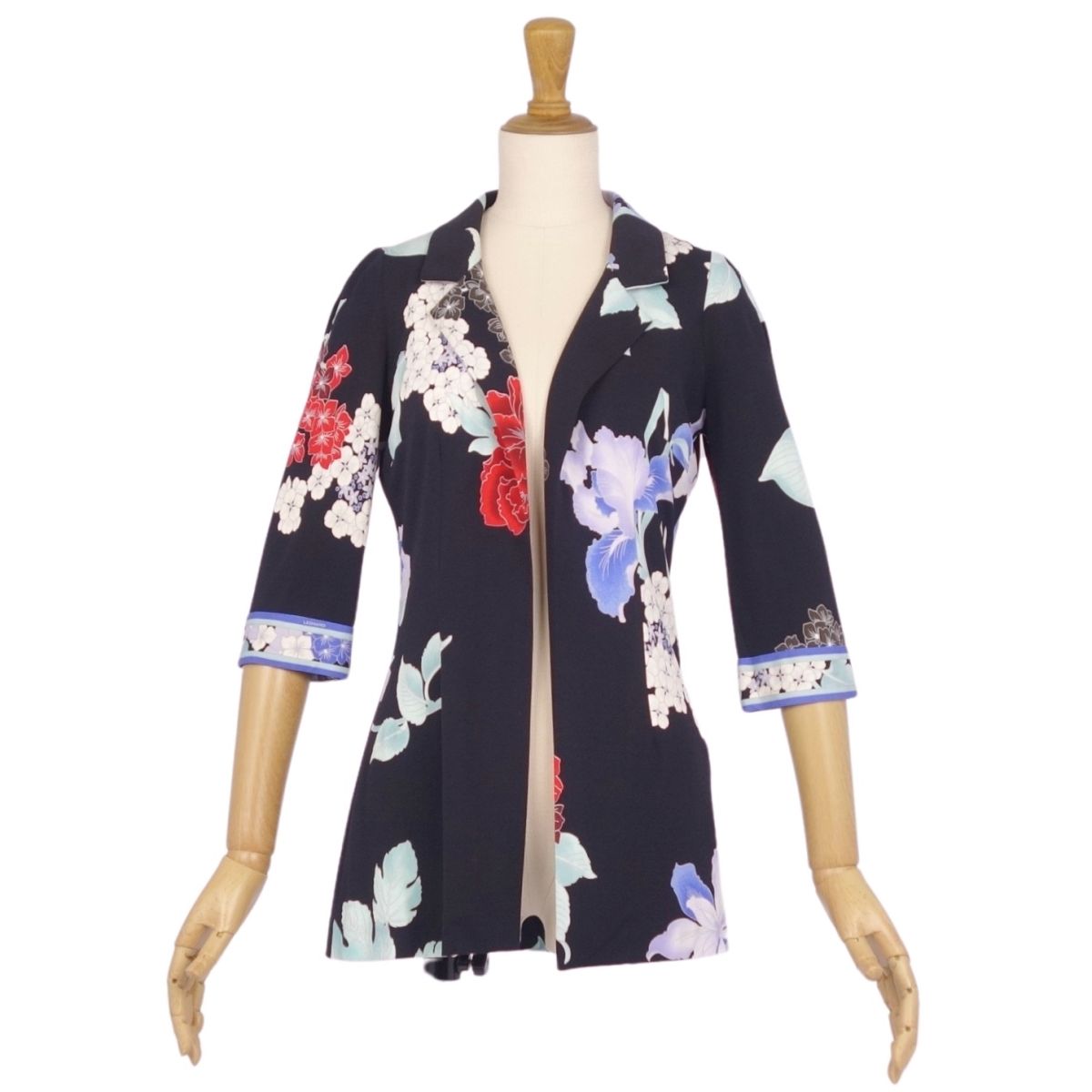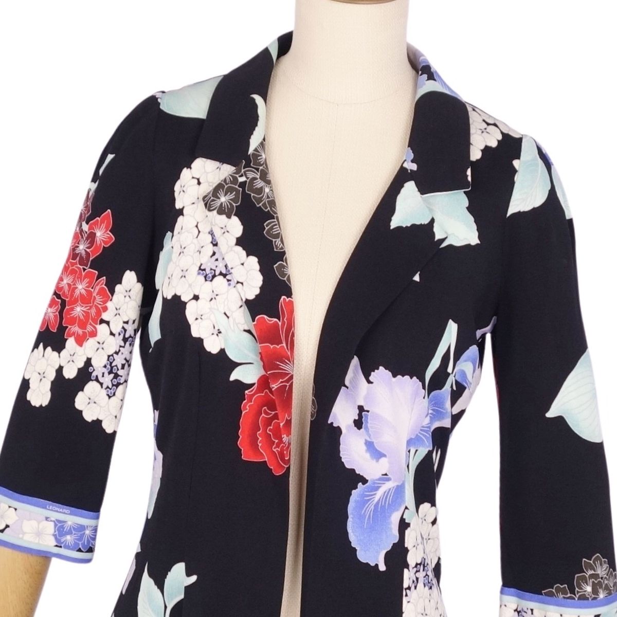 レオナール LEONARD PARIS ジャケット ボタンレス 七分丈 花柄 シルク ジャージー トップス レディース マルチカラー サイズ42(L相当)