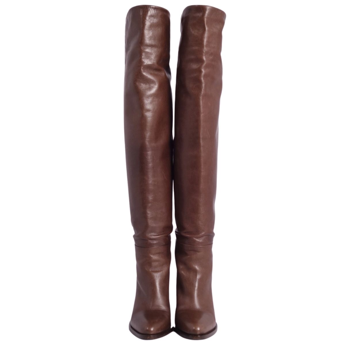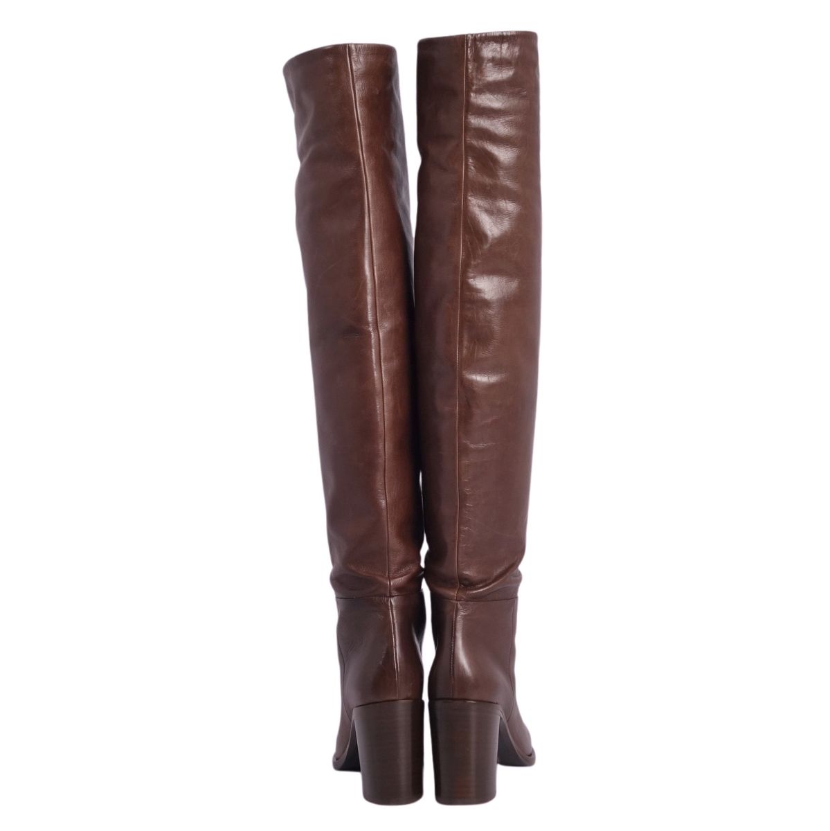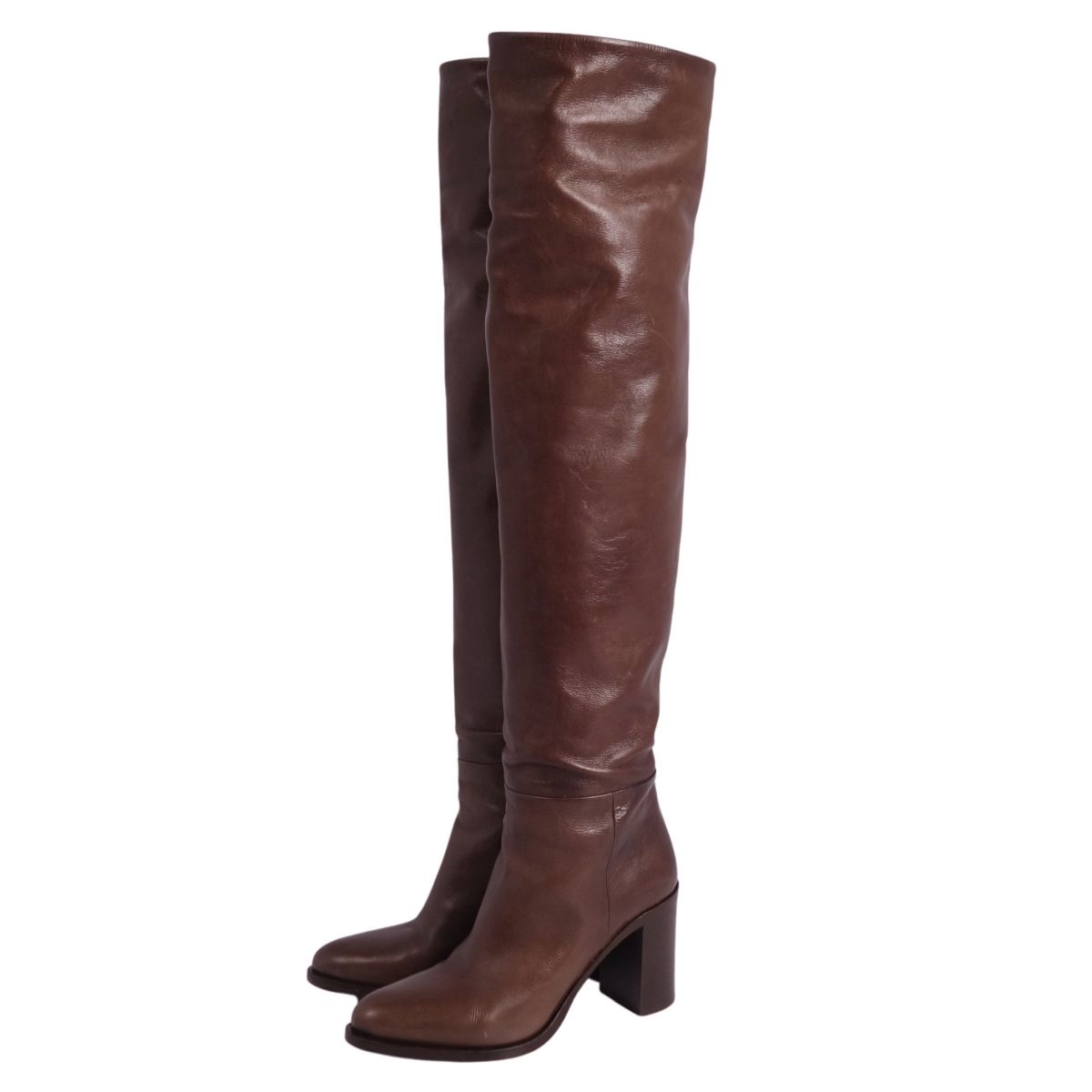 プラダ PRADA ブーツ ニーハイブーツ ロングブーツ レザー ヒール シューズ 靴 レディース イタリア製 ブラウン サイズ36.5(23.5cm相当)