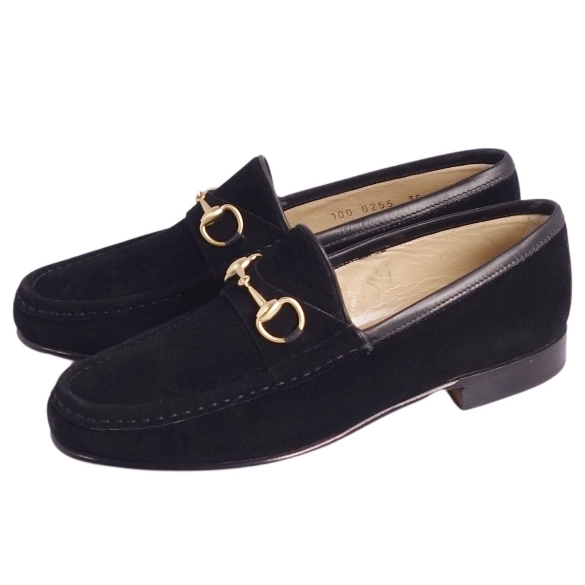 Vintage グッチ GUCCI ローファー モカシン ホースビット スウェードレザー シューズ 靴 レディース イタリア製 ブラック サイズ36C(23cm相当)