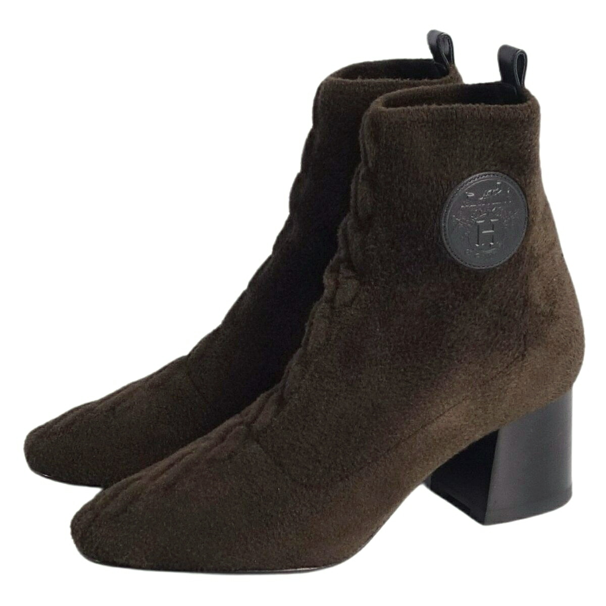 エルメス HERMES ブーツ 2023 ヴォルヴェール ショートブーツ ニット ヒール シューズ 靴 レディース イタリア製 カーキ サイズ36(23cm相当)