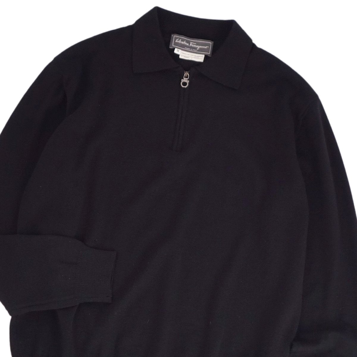 サルヴァトーレ フェラガモ Salvatore Ferragamo ニット ハーフジップ セーター ロングスリーブ 長袖 ウール トップス メンズ イタリア製 ブラック サイズM