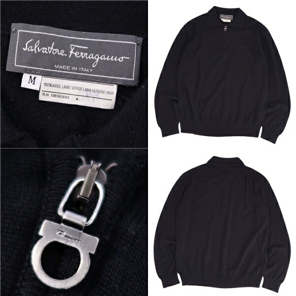| 商品名 | 【美品】サルヴァトーレ フェラガモ Salvatore Ferragamo ニット ハーフジップ セーター ロングスリーブ 長袖 ウール トップス メンズ イタリア製 M ブラック【中古】 |