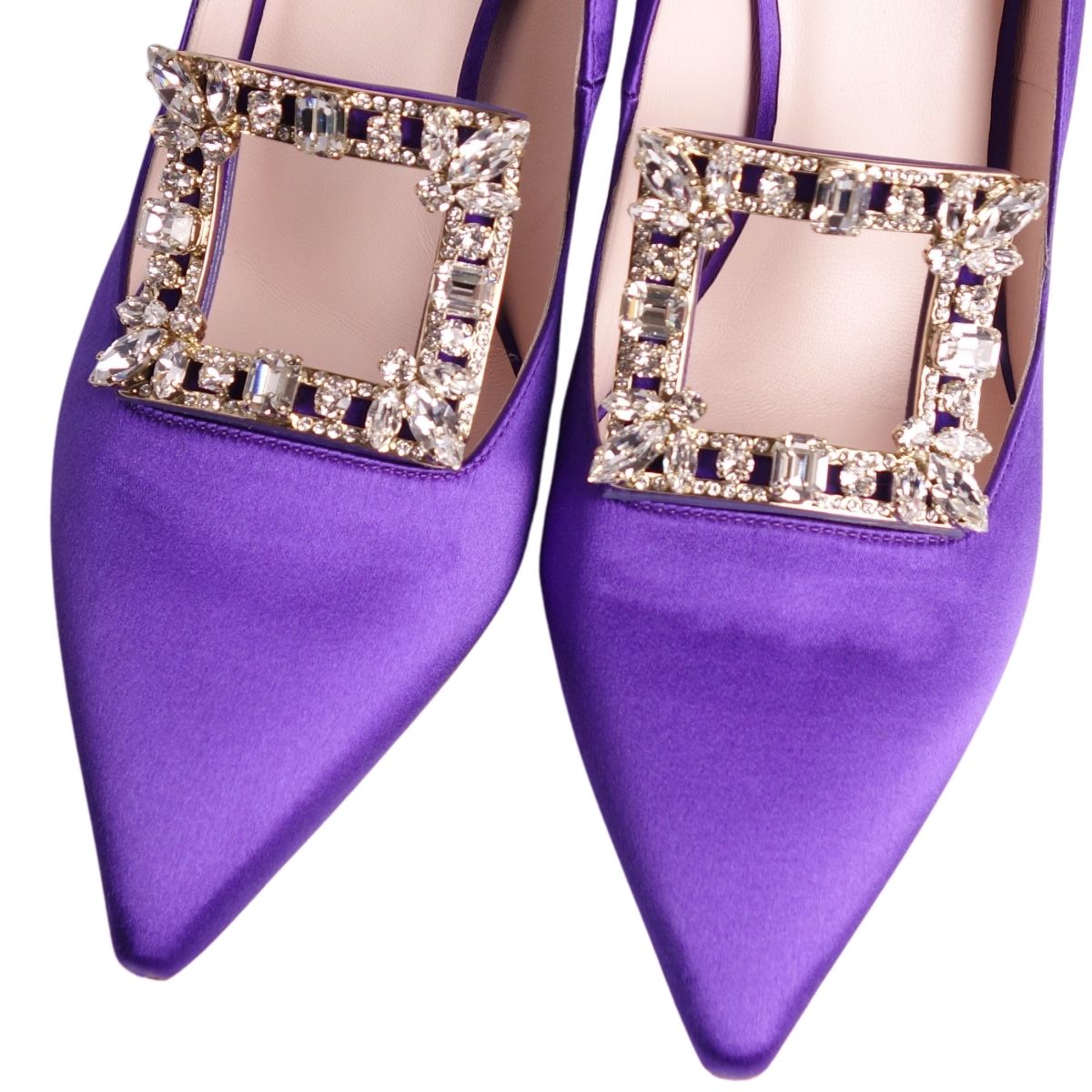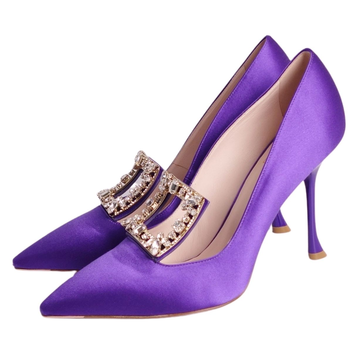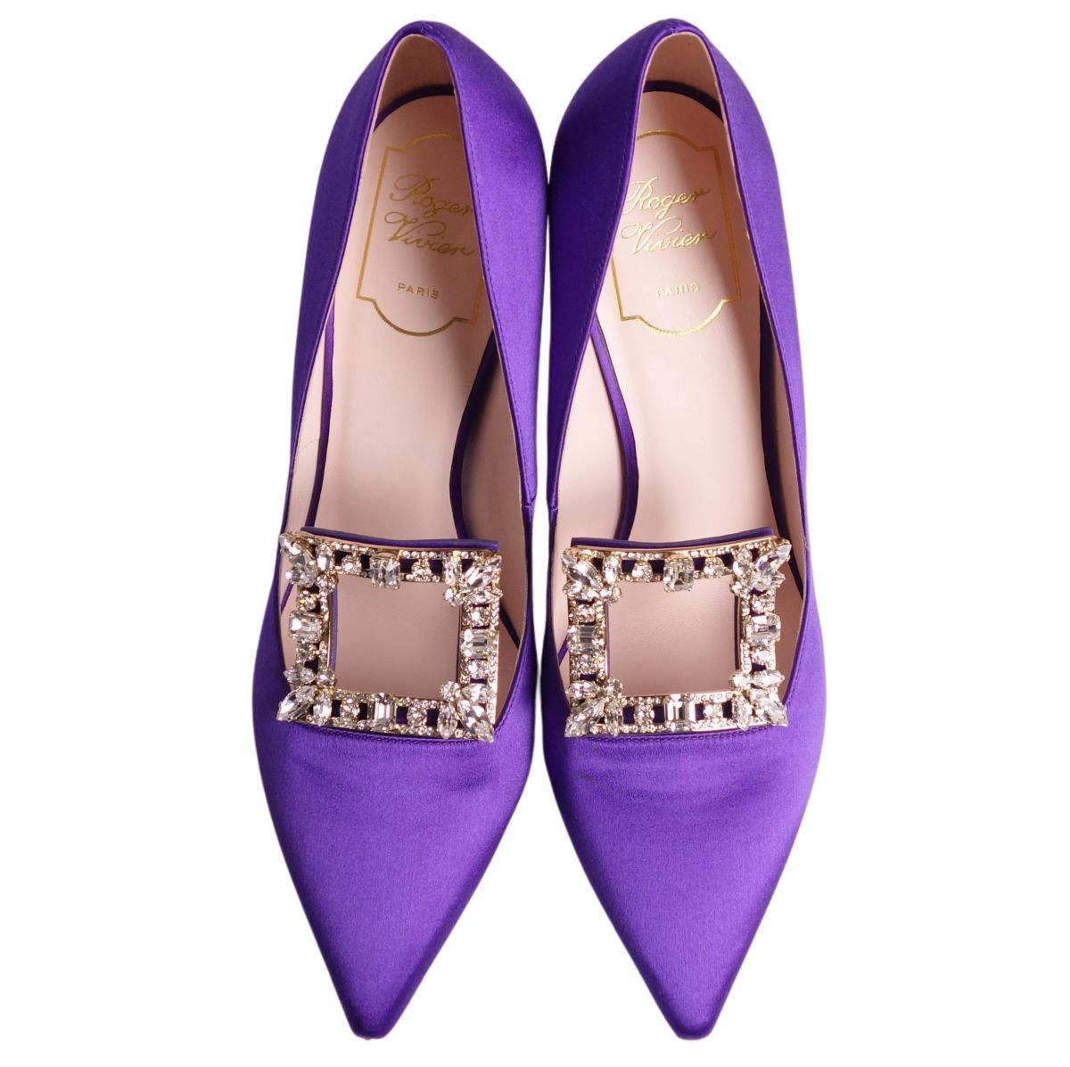 ロジェヴィヴィエ Roger Vivier パンプス ストラス バックル ビジュー サテン ヒール シューズ 靴 レディース イタリア製 パープル サイズ40(27cm相当)